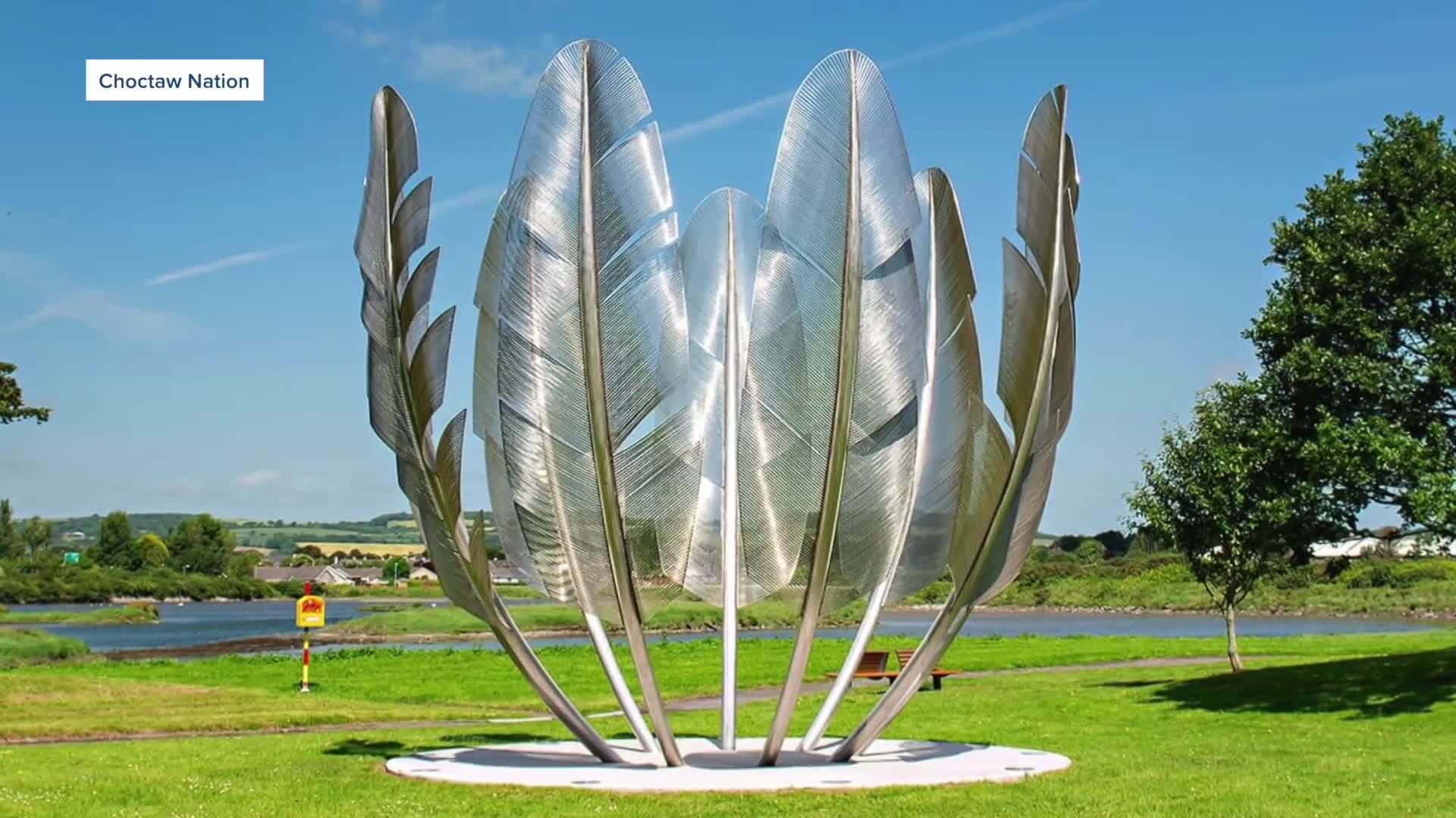 "It's really special to feel so cared for both by my tribe and my people, and then to come to a foreign country where you don't know anyone and to meet people - taxi drivers...who have heard about this connection," Young said. "Many folks in Ireland are aware of the connection with the Choctaw Nation, especially people in County Cork. The Kindred Spirits Monument...is a public art installation in Midleton County Cork."