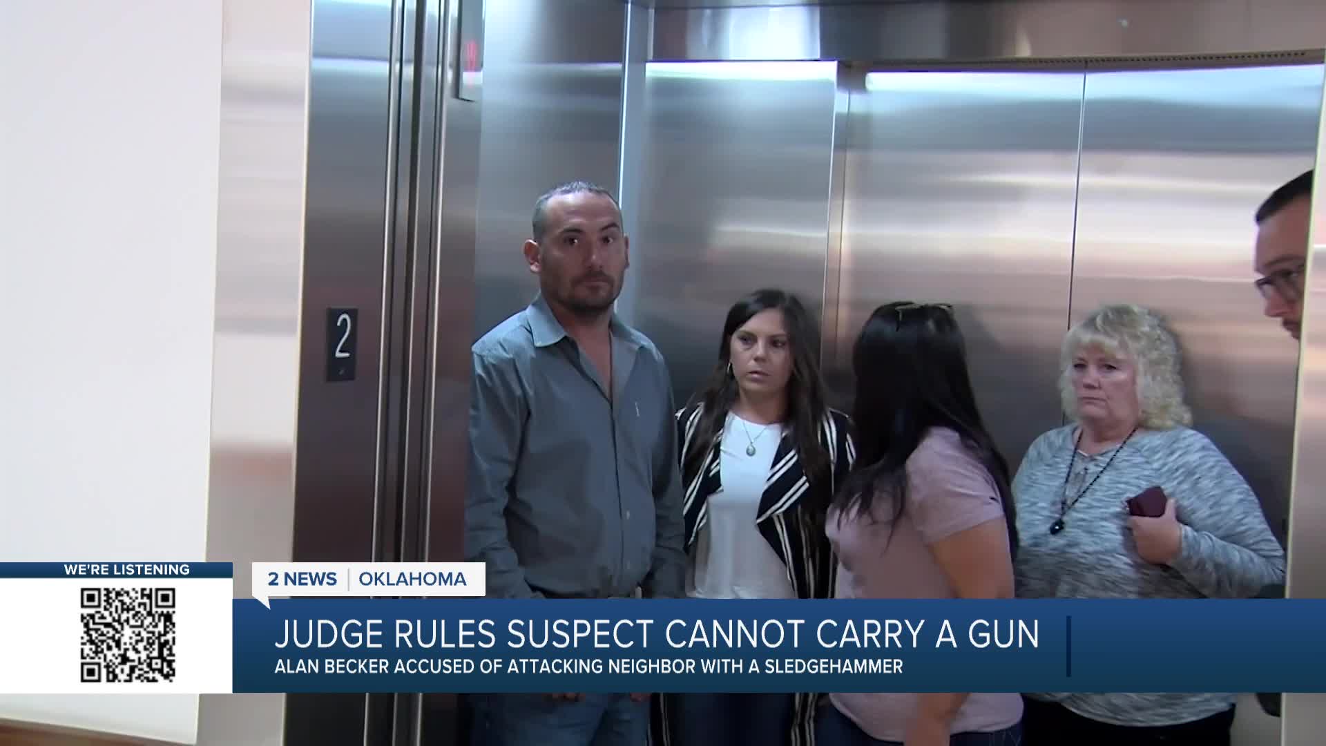 ADAIR COUNTY — The Adair County man accused of attacking his neighbor’s son with a sledgehammer and threatening him with a gun will not be able to carry a weapon while out on bond.