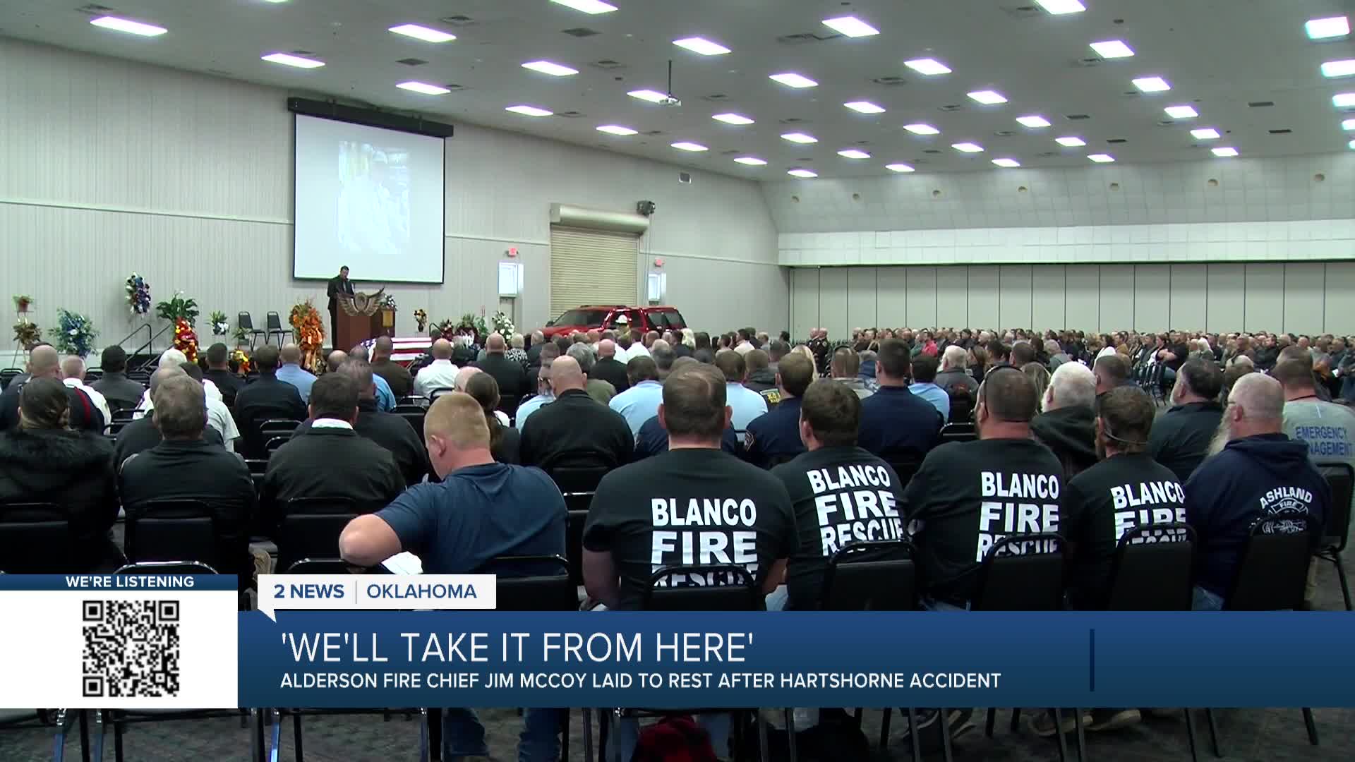 Emergency crews from all over spent the morning mourning with the McCoy's — Blanco, Haileyville, Tulsa. All of them, united in their grief for a fallen brother.
