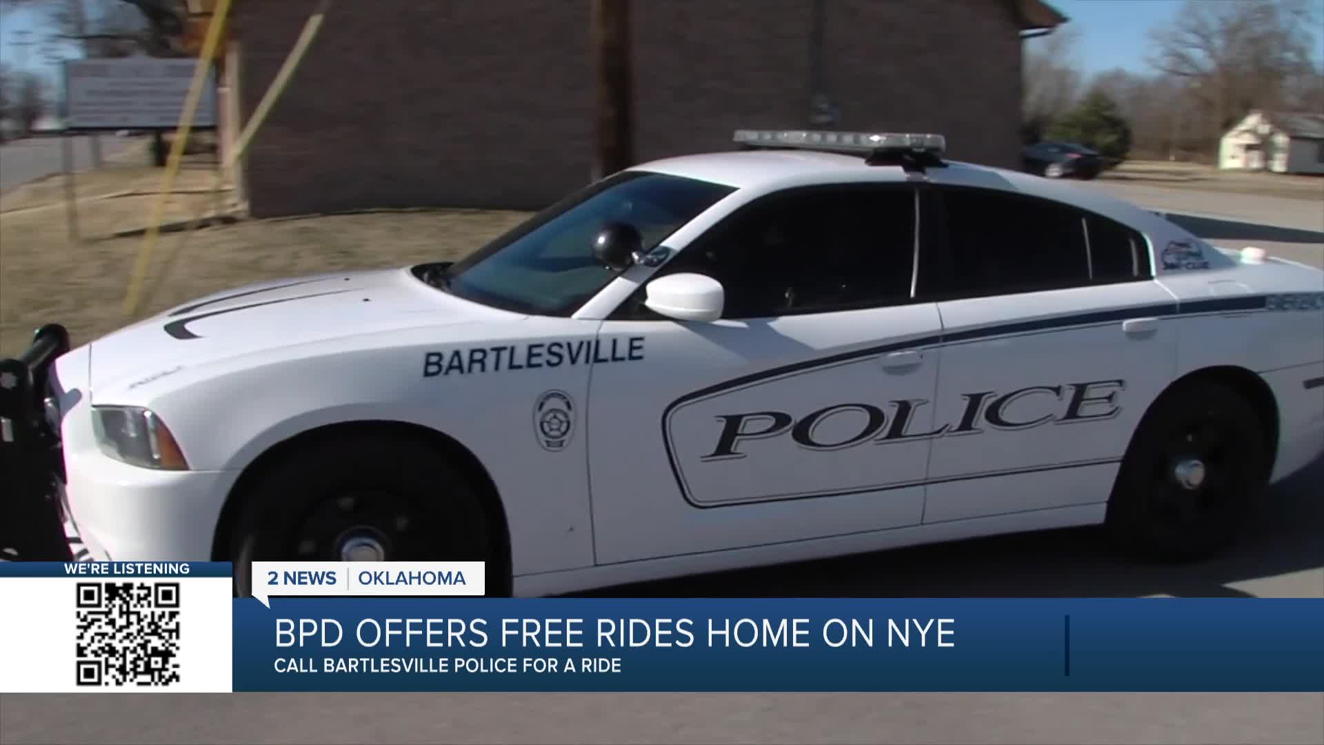 BARTLESVILLE, Okla — Bartlesville police are offering free rides home to anyone who has been drinking during New Year's Eve festivities as part of their annual Safe Ride Home program.
