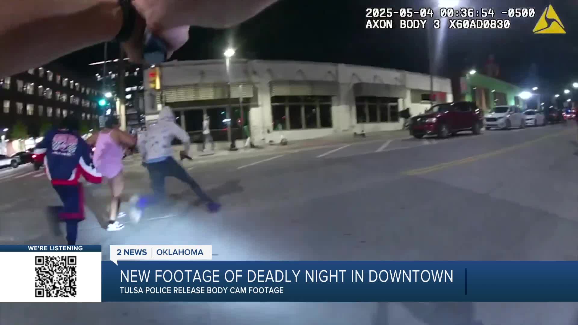 TULSA, Okla. — 2 News Oklahoma obtained Tulsa police body camera footage of a chaotic, violent night downtown—that left one person dead and several people injured.