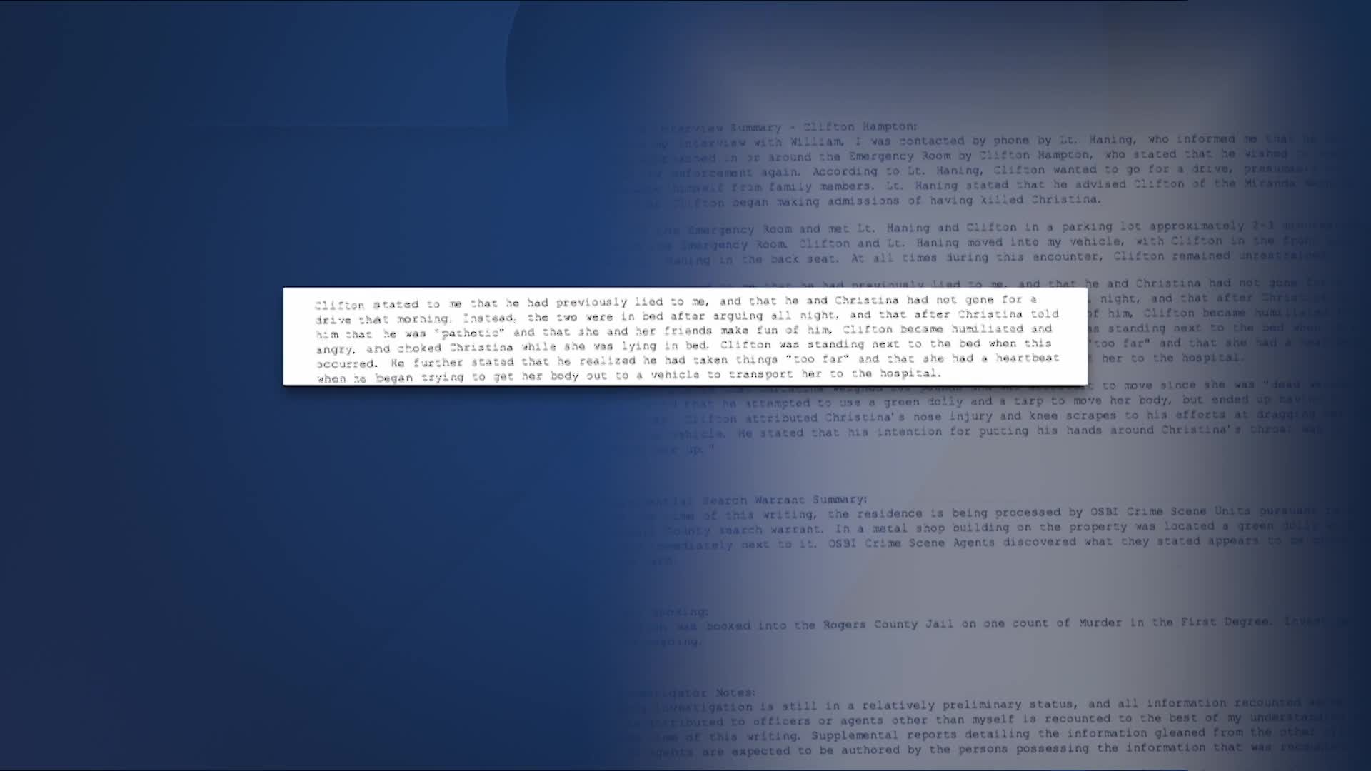 The affidavit details Hampton's account of events that changed during his interview with investigators.