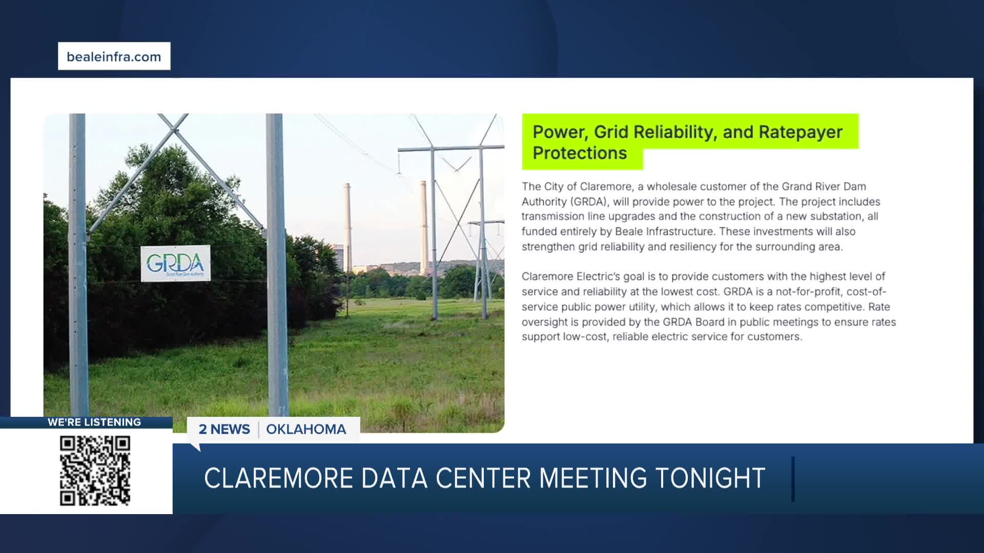 Beal Infrastructure wants to build a data center on land near an industrial park on the north side of town. While the city hasn't officially confirmed the developer, Beal has published a full web page dedicated to the Claremore project.