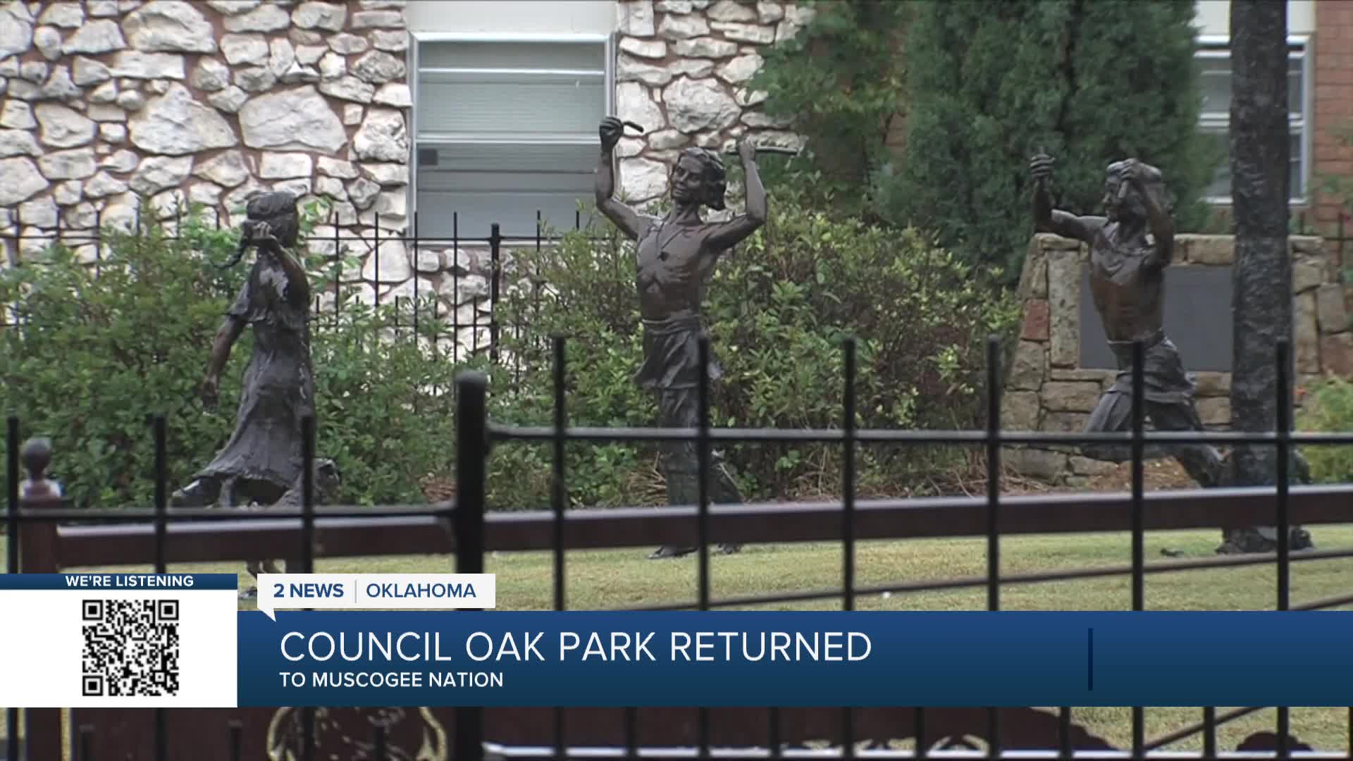 For decades, the city of Tulsa ran both Council Oak Park and Stickball Park across the street. Mayor Monroe Nichols and the Tulsa City Council are officially returning both to the Muscogee Nation.