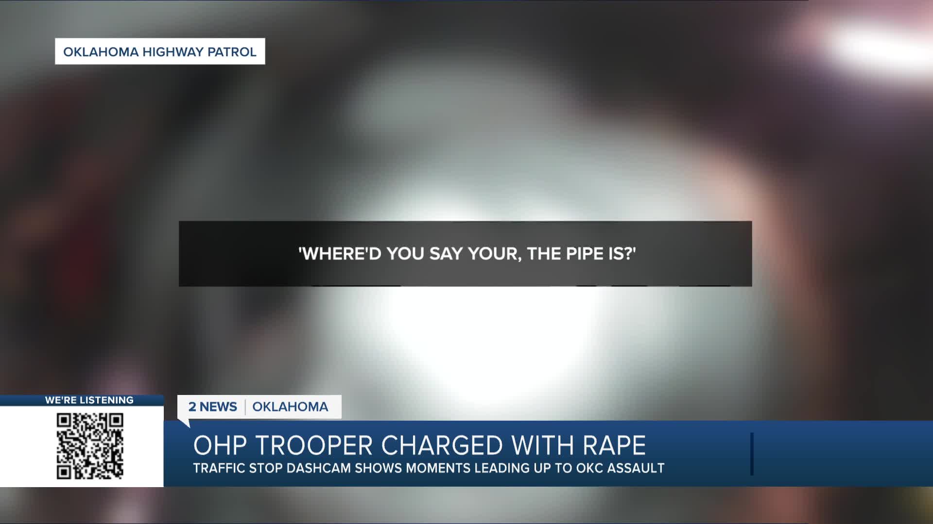 OKLAHOMA CITY — The Oklahoma Highway Patrol released dash camera footage, showing the traffic stop that ended with a trooper being charged with first-degree rape and forcible oral sodomy.