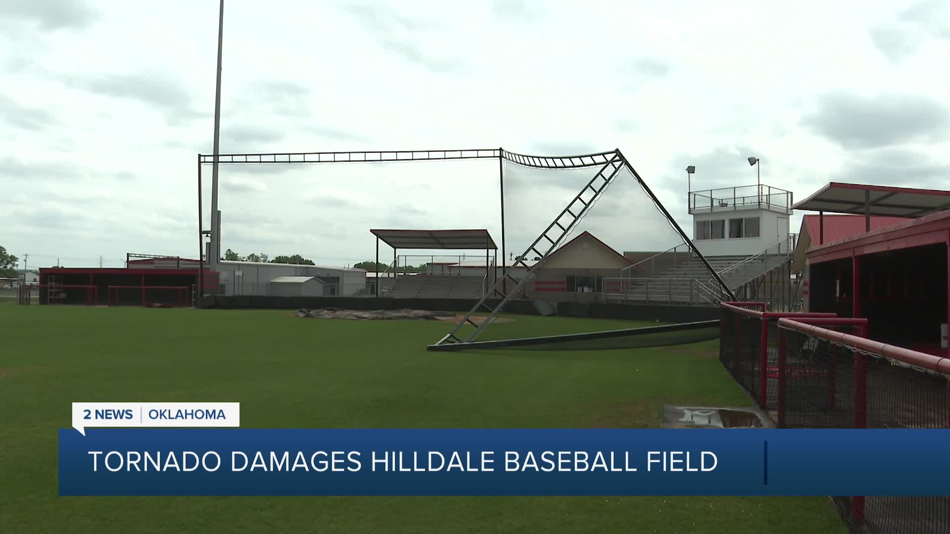 WATCH: 'Devastating definitely': Hilldale baseball team reacts to damaged field after tornado