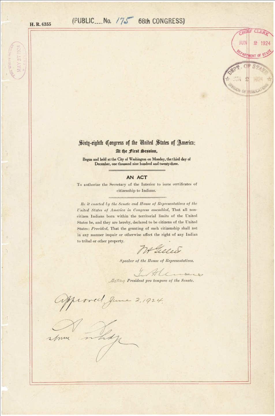 He said the U.S. government passed the Indian Citizenship Act of 1924 to remove any suspicion of natives being citizens.