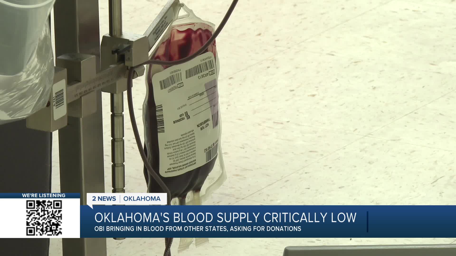 TULSA, Okla. — Our Blood Institute is facing a critical shortage that forced the nonprofit to outsource blood supplies from the East Coast, as the need from local hospitals increases.