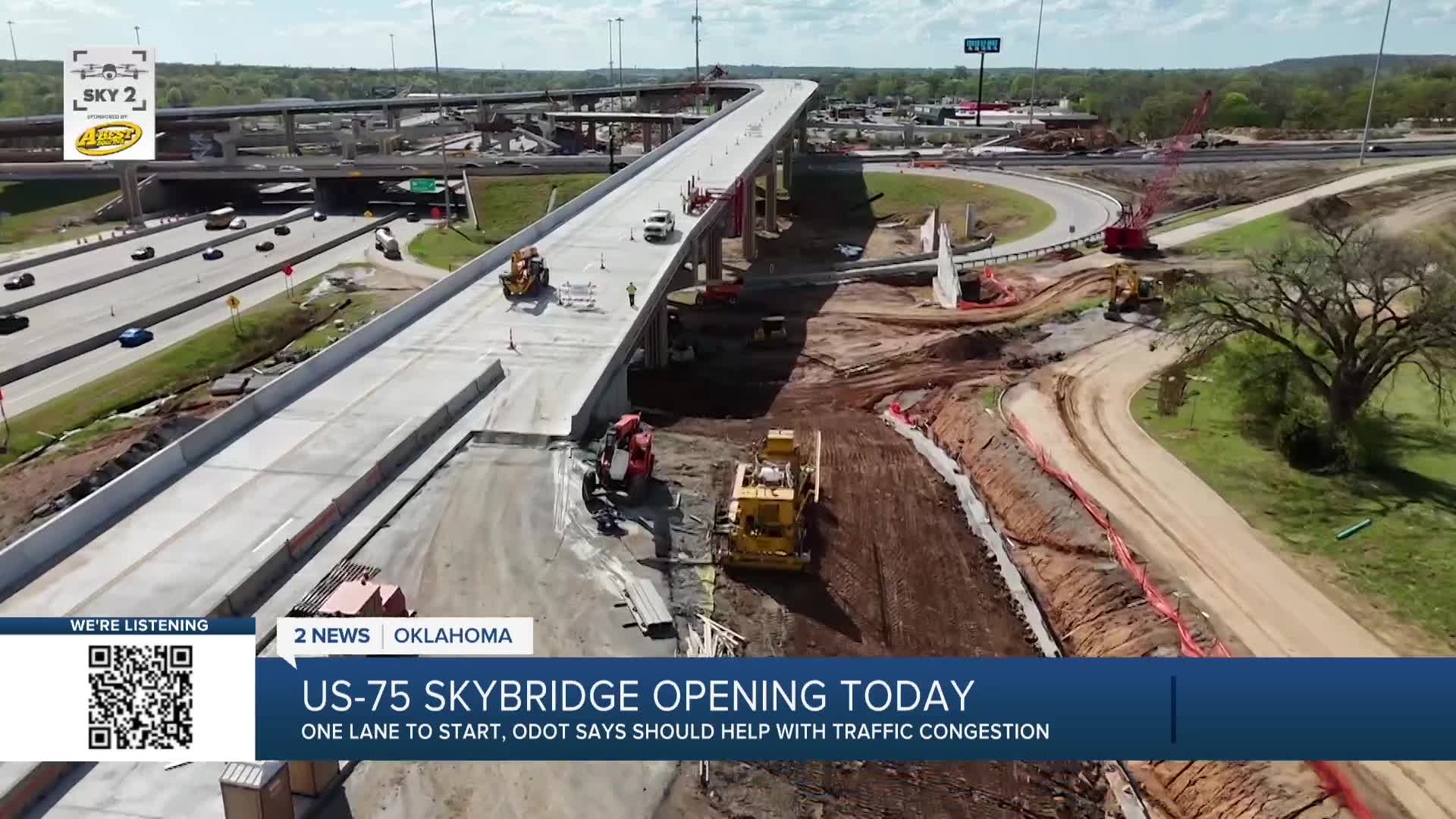 TULSA, Okla. — The Oklahoma Department of Transportation plans to open one lane of the new Tulsa Henge skybridge, connecting I-44 to US-75 southbound.