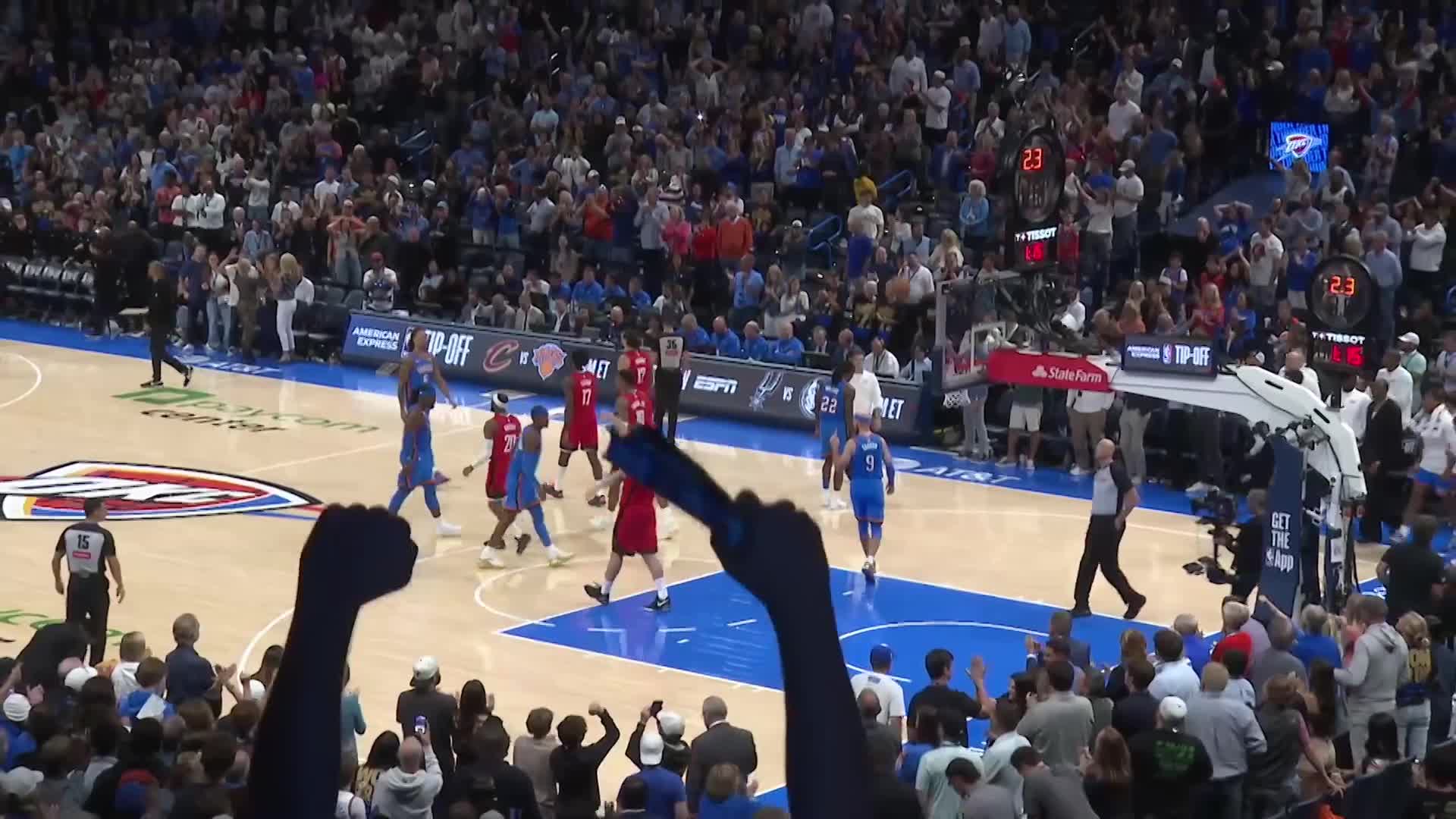 The Thunder beat the Houston Rockets in double overtime 125-124.