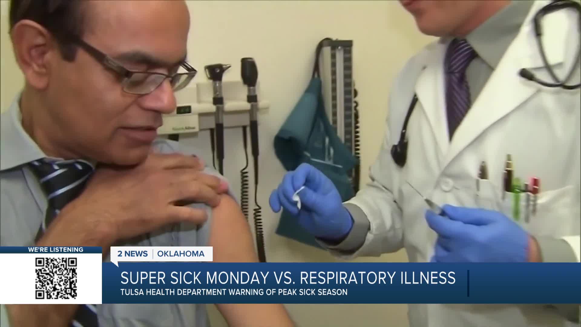 TULSA, Okla. — The Super Bowl is officially over, but now "Super Sick Monday" is upon us — a day when an estimated 15% of the workforce calls out of work due to Super Bowl festivities. But it turns out some of those sick calls may be legitimate, as now is a crucial time for several respiratory infections.