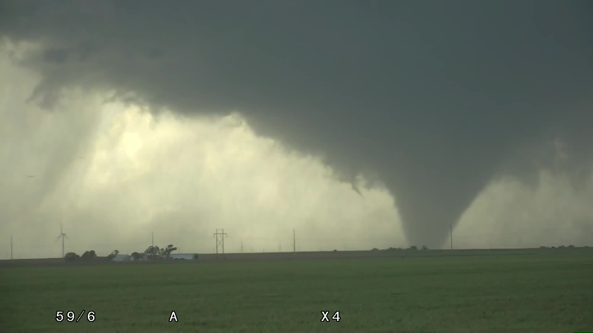Grogan is heard talking over the footage briefly as a sister tornado forms behind the larger one.