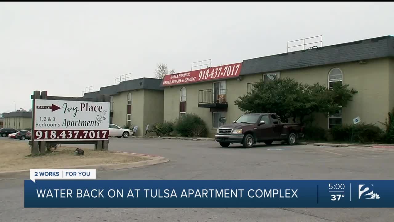 TULSA, Okla. — The water is back on at east Tulsa's Ivy Place Apartments. The city shut it off Wednesday evening, because the property managers hadn't paid their bill.