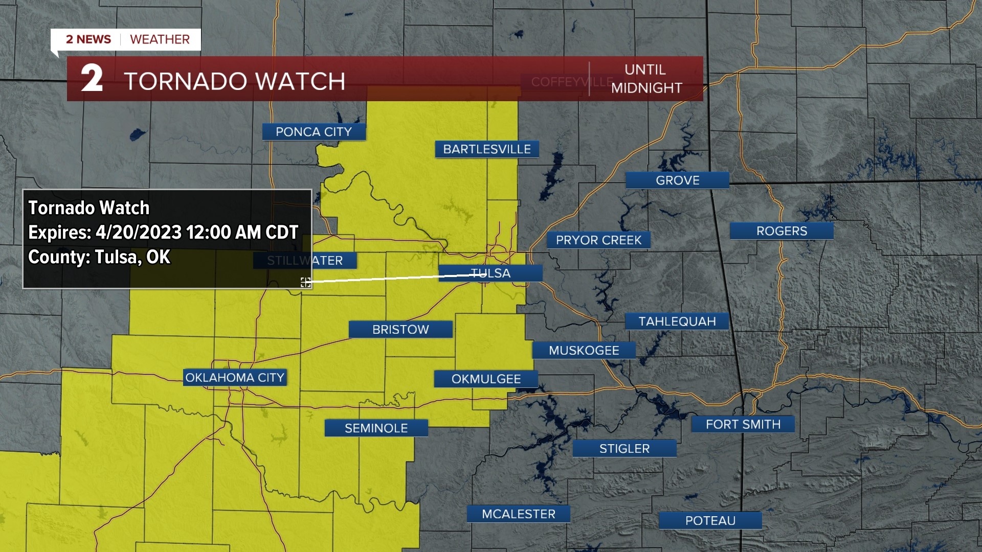 Tornado Watch issued for several Oklahoma Counties, including Tulsa