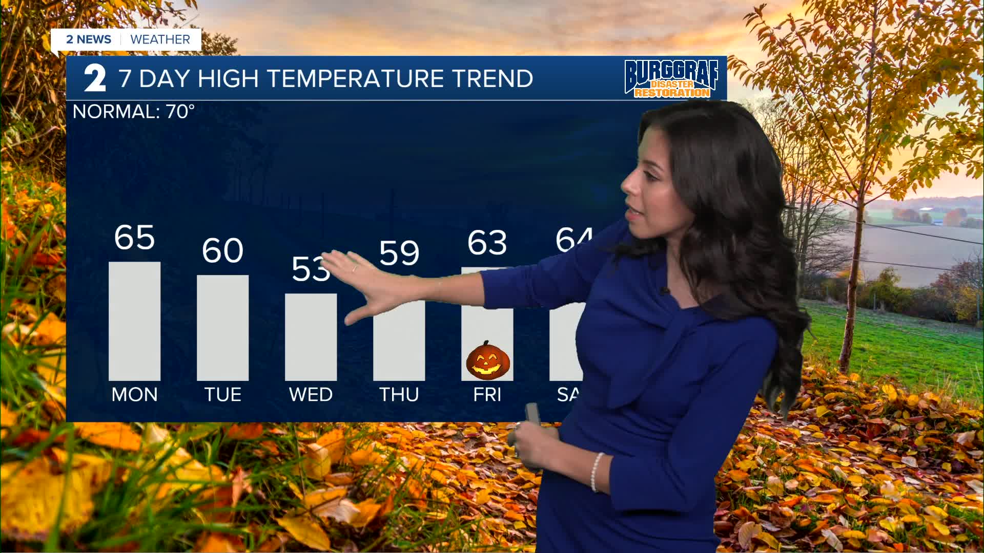 Sunshine also on Halloween Friday. Lows dip in the low 40s with highs in the low 60s. Not much wind currently in our forecast.