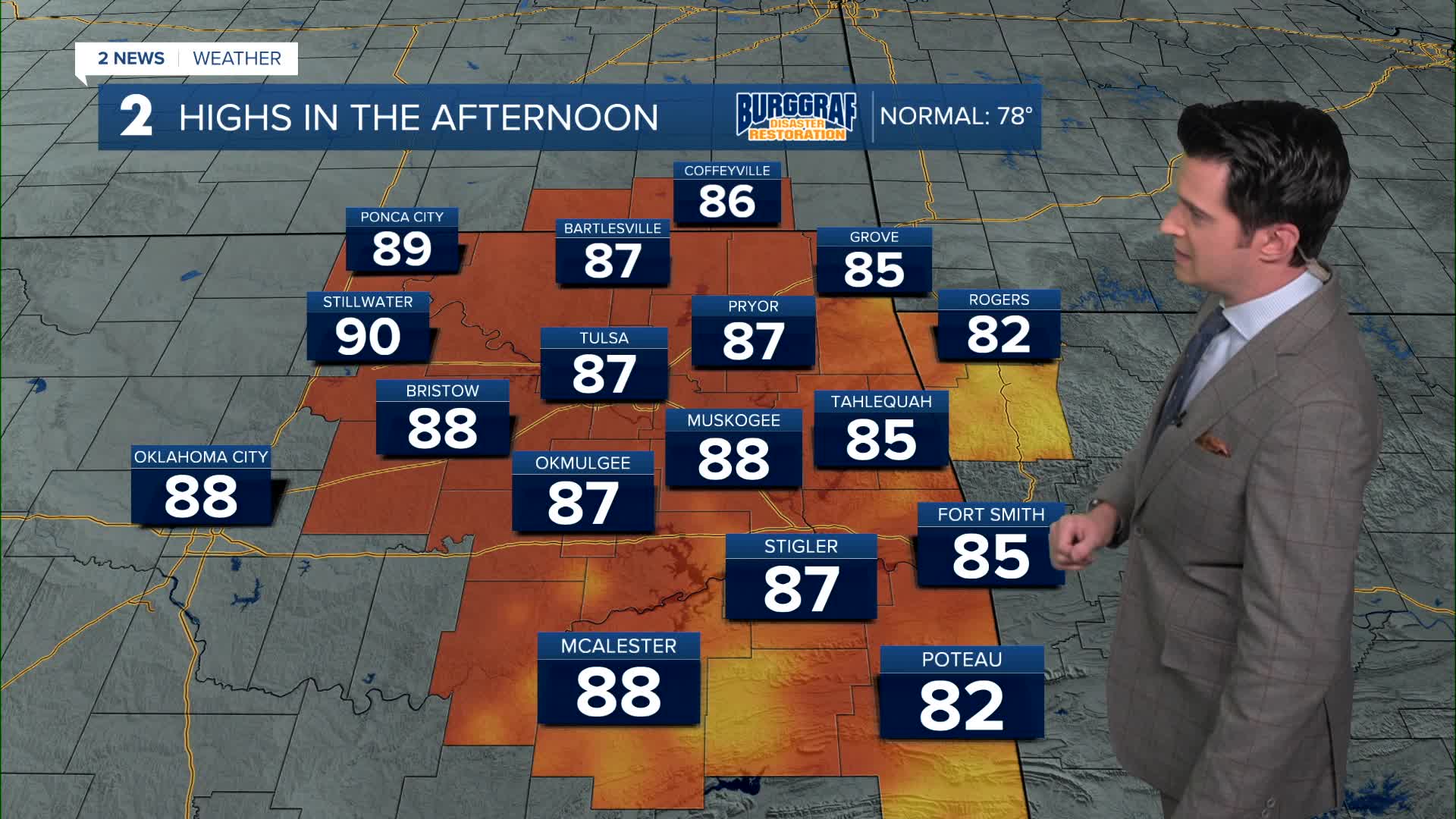 On Thursday and Friday, lows in the low 60s with daytime highs in the mid 80s. The weather looks great for the TODAY Show live in Tulsa Friday morning!