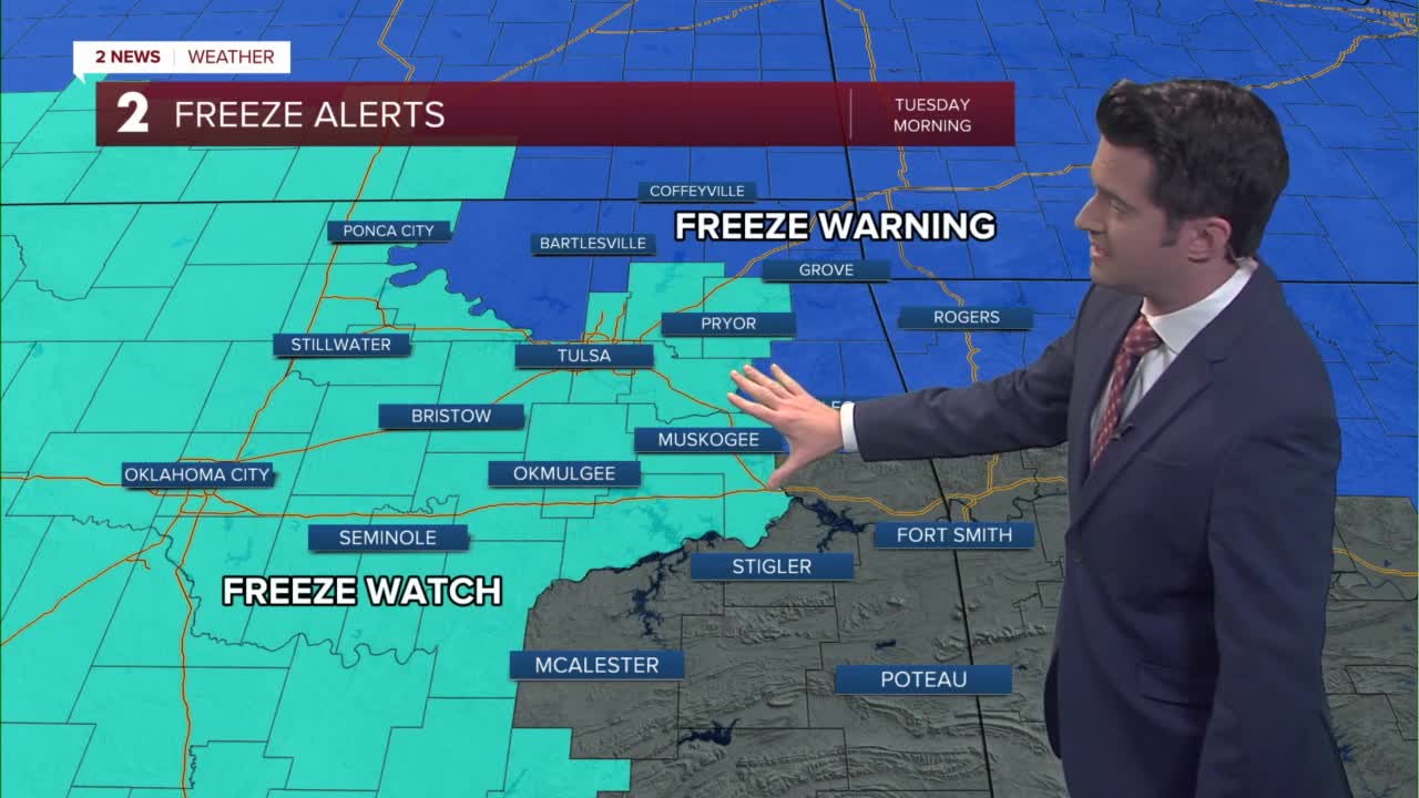 Freezing temperatures on the way for Tuesday and Wednesday mornings. Highs in the low 50s on Tuesday and then back to the low 60s on Wednesday.