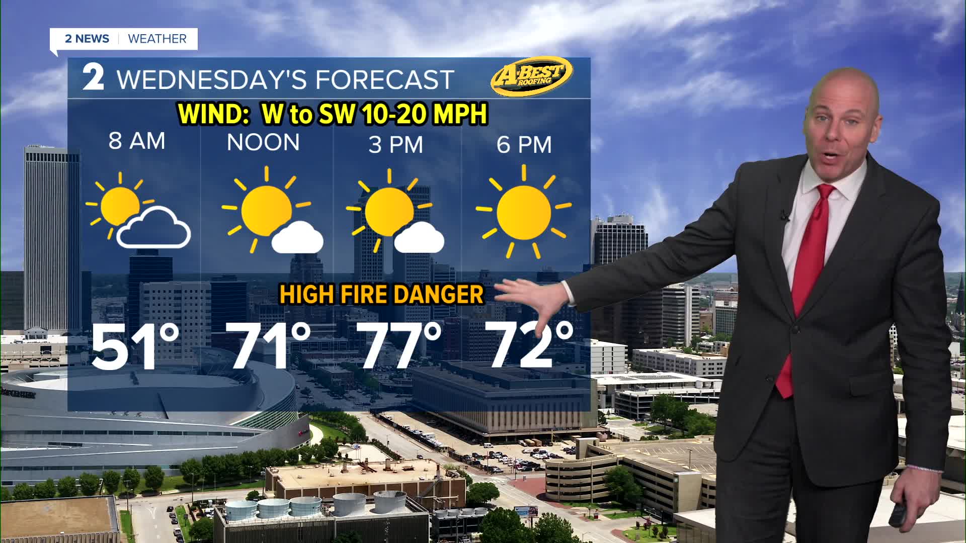 Lows tomorrow morning around 50° with highs in the mid to upper 70s. More sunshine with mostly sunny skies and less wind. Southwest wind gusts 20-25 mph. Humidity values will likely range between 10% and 25% leading to a high grass fire risk. Outdoor burning in discouraged.