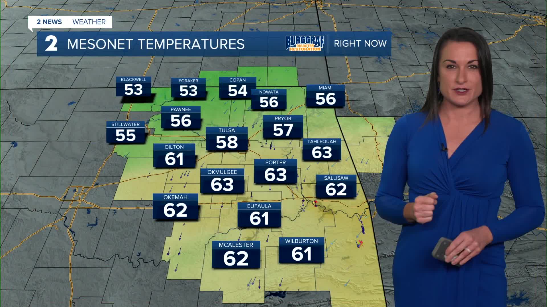 TULSA, OKLA — Cool weather out-the-door with temperatures in the 50s! Highs this afternoon in the upper 70s to lower 80s under a partly cloudy sky.