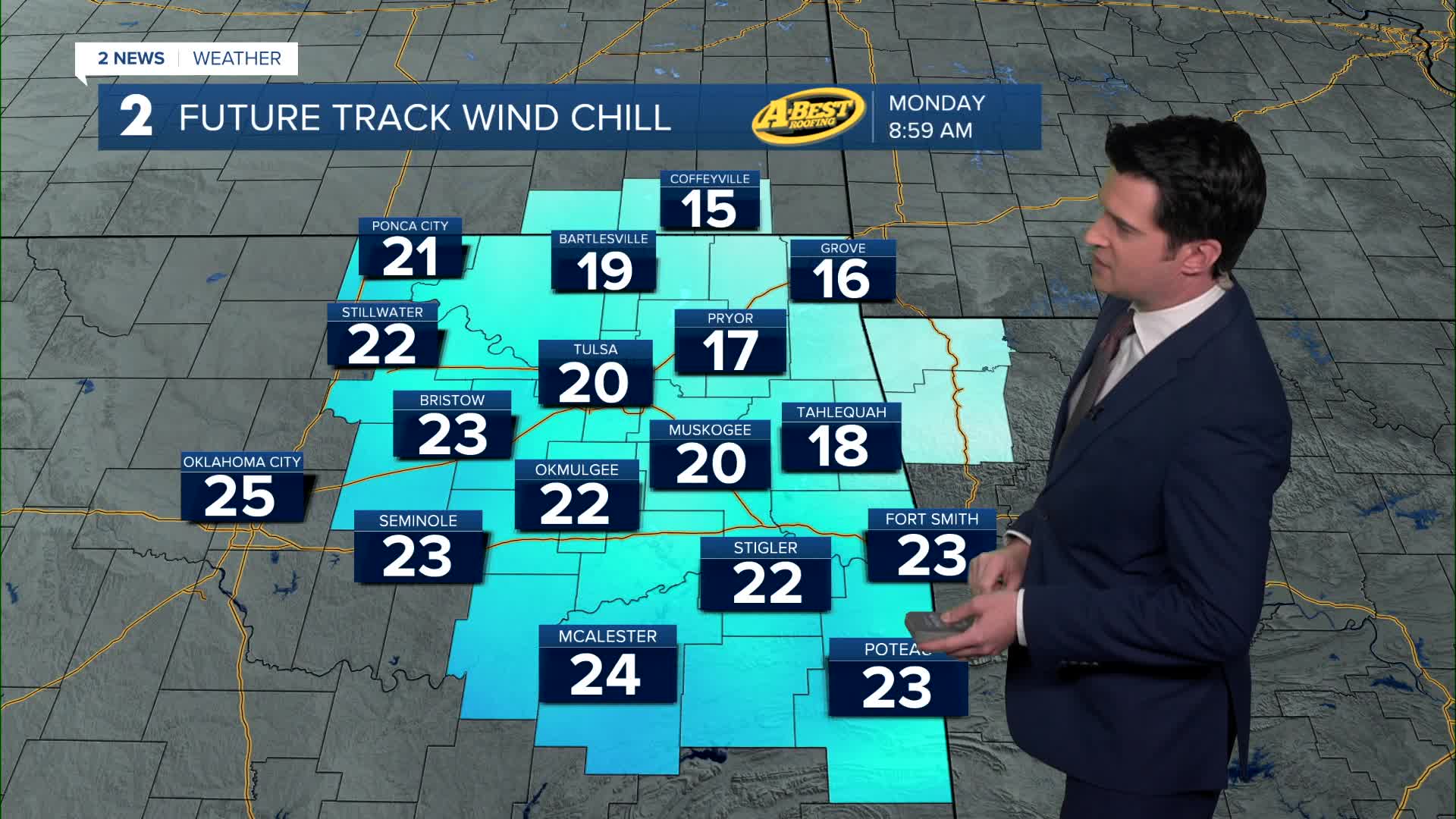 Over the weekend, it looks like another cold front will move through Green Country. As of now, lows in the mid 40s Saturday morning with highs in the low 70s and then lows down to the 30s Sunday morning with daytime highs in the 50s. Chance for more showers come Sunday.