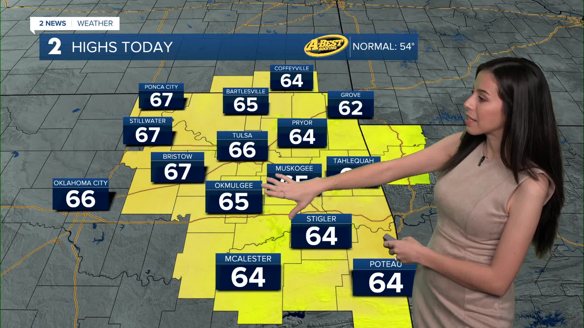 TULSA, Okla. — Sunshine will return for Sunday with afternoon temperatures in the mid 60s. Gusty north winds will begin to be more calm by the afternoon.