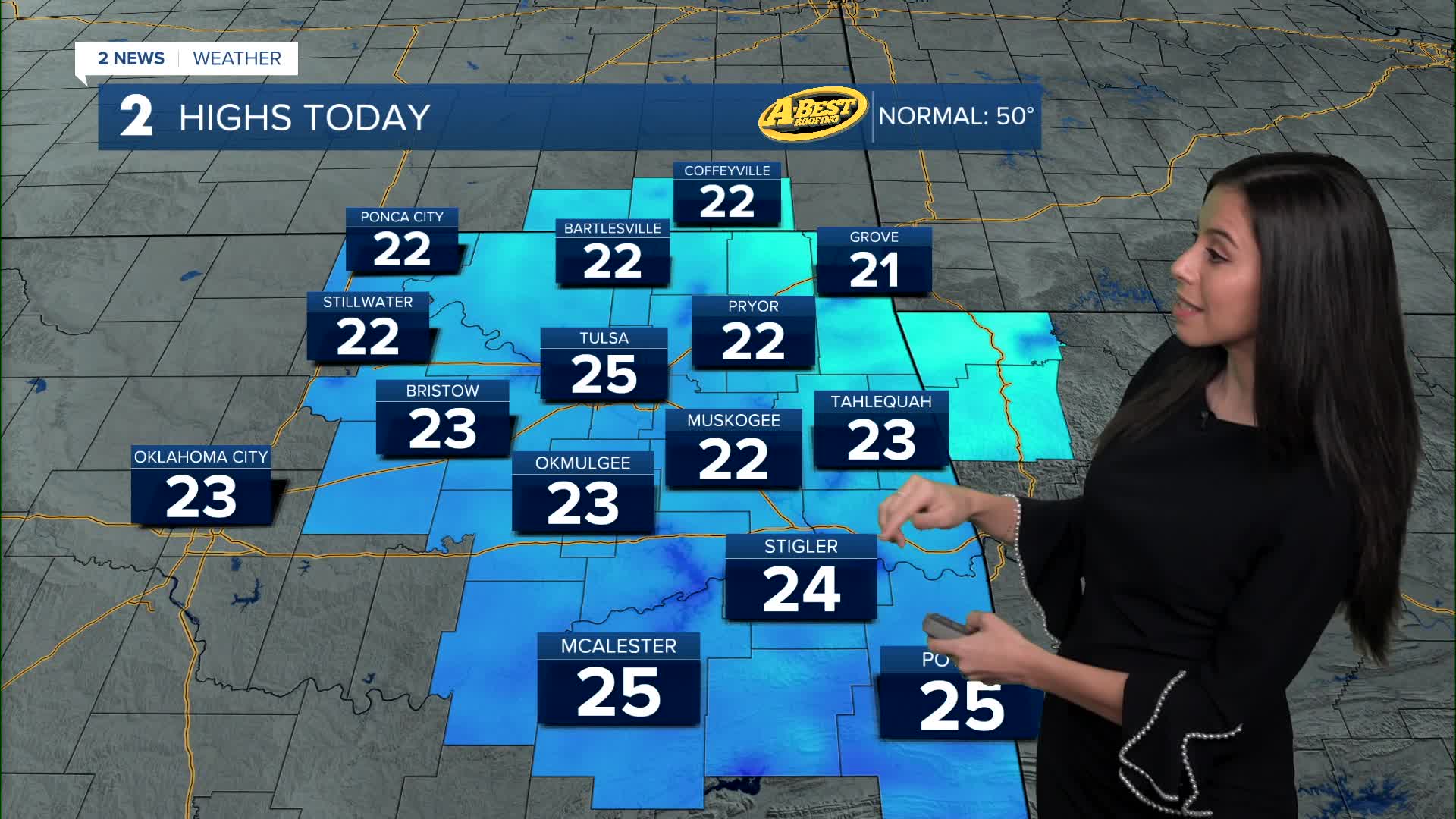 Morning lows in the upper teens to begin Friday with highs in the mid 20s as we get another shot of frigid air.