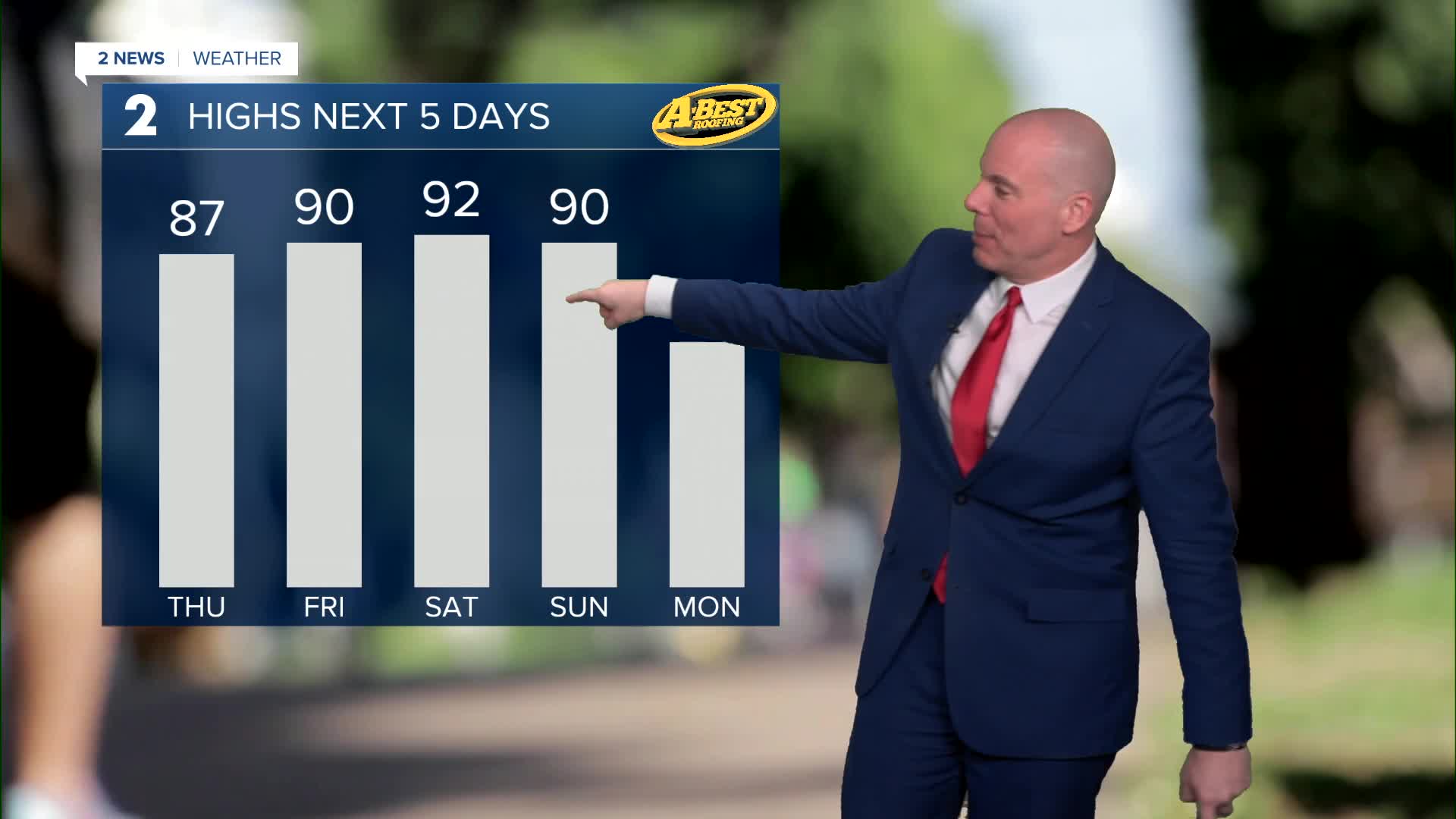 On Saturday, morning lows in the upper 50s with highs in the low 90s at 92°. South winds 5-15 mph. Saturday's record is in the upper 90s at 98°.