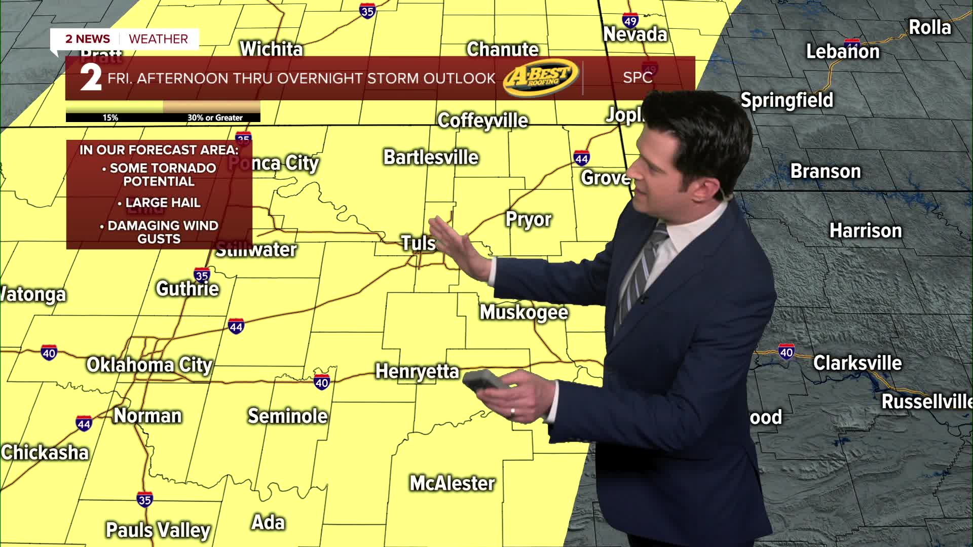 TULSA, Okla. — We'll have partly to mostly cloudy skies tonight. ENE winds 5-10 mph. The low in Tulsa down to 46°.