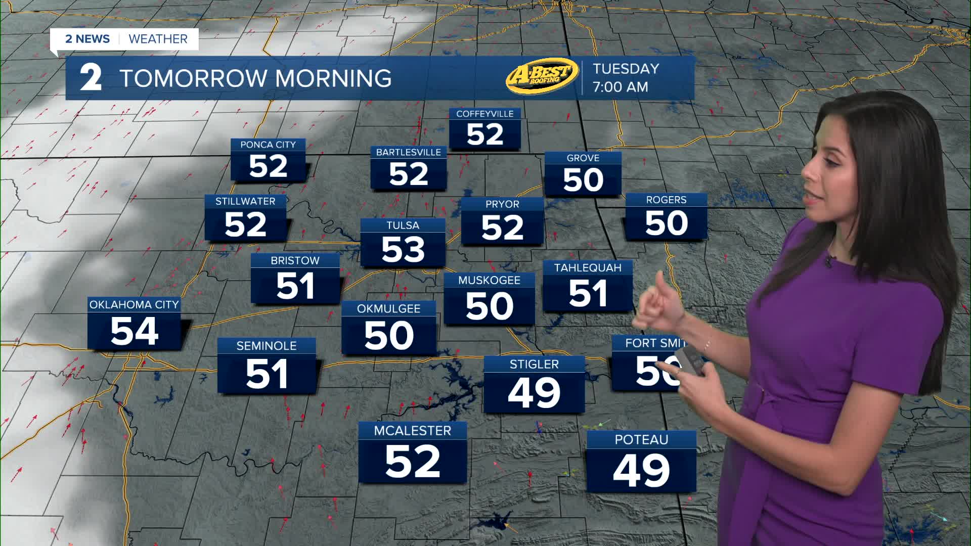 TULSA, Okla. — A cool start this morning with some areas in the upper 40s. Afternoon conditions look great for any outdoor activities. Highs in the mid 70s with mostly clear skies and south winds 10-20 mph.