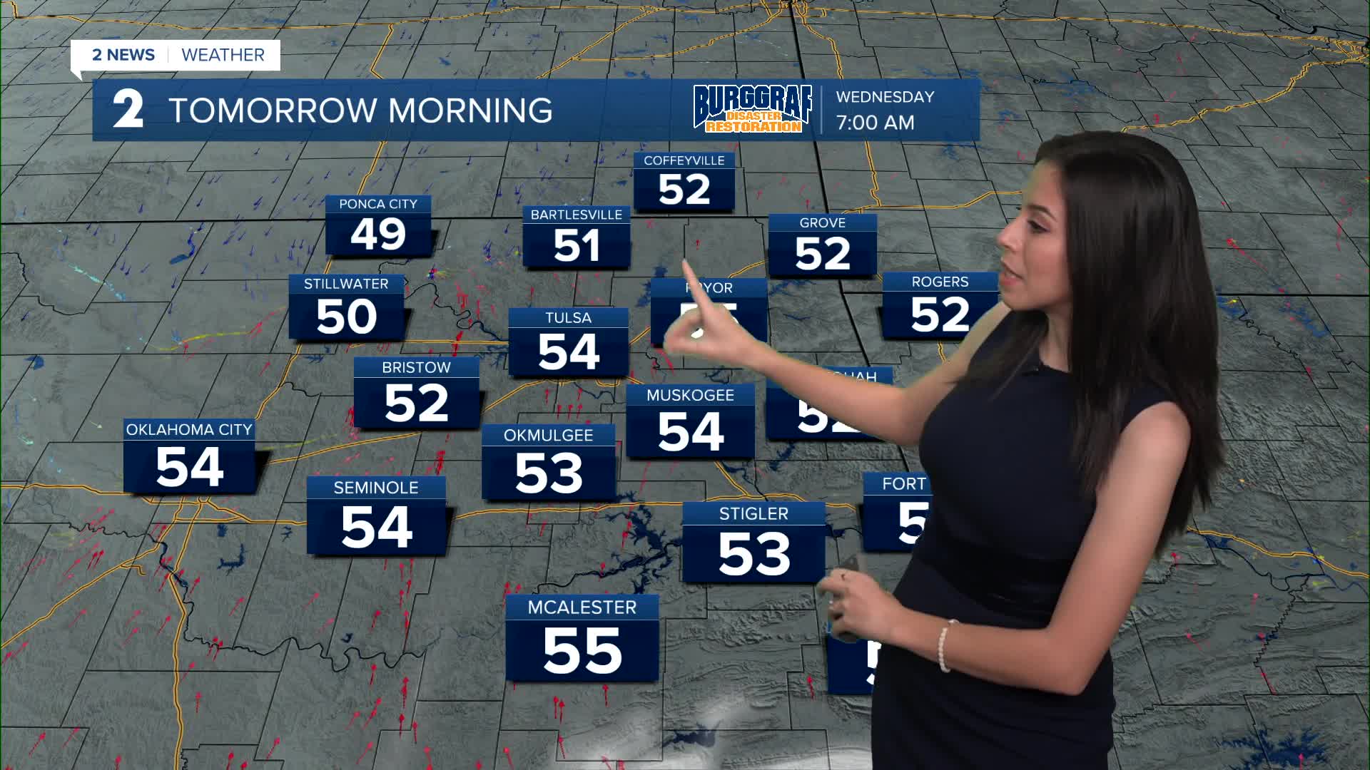 TULSA, Okla. — Winds increase during the day with afternoon highs climbing in the upper 70s. Winds 15-30 mph with lots of sunshine and dry conditions for any Tuesday plans. Limited fire weather today.