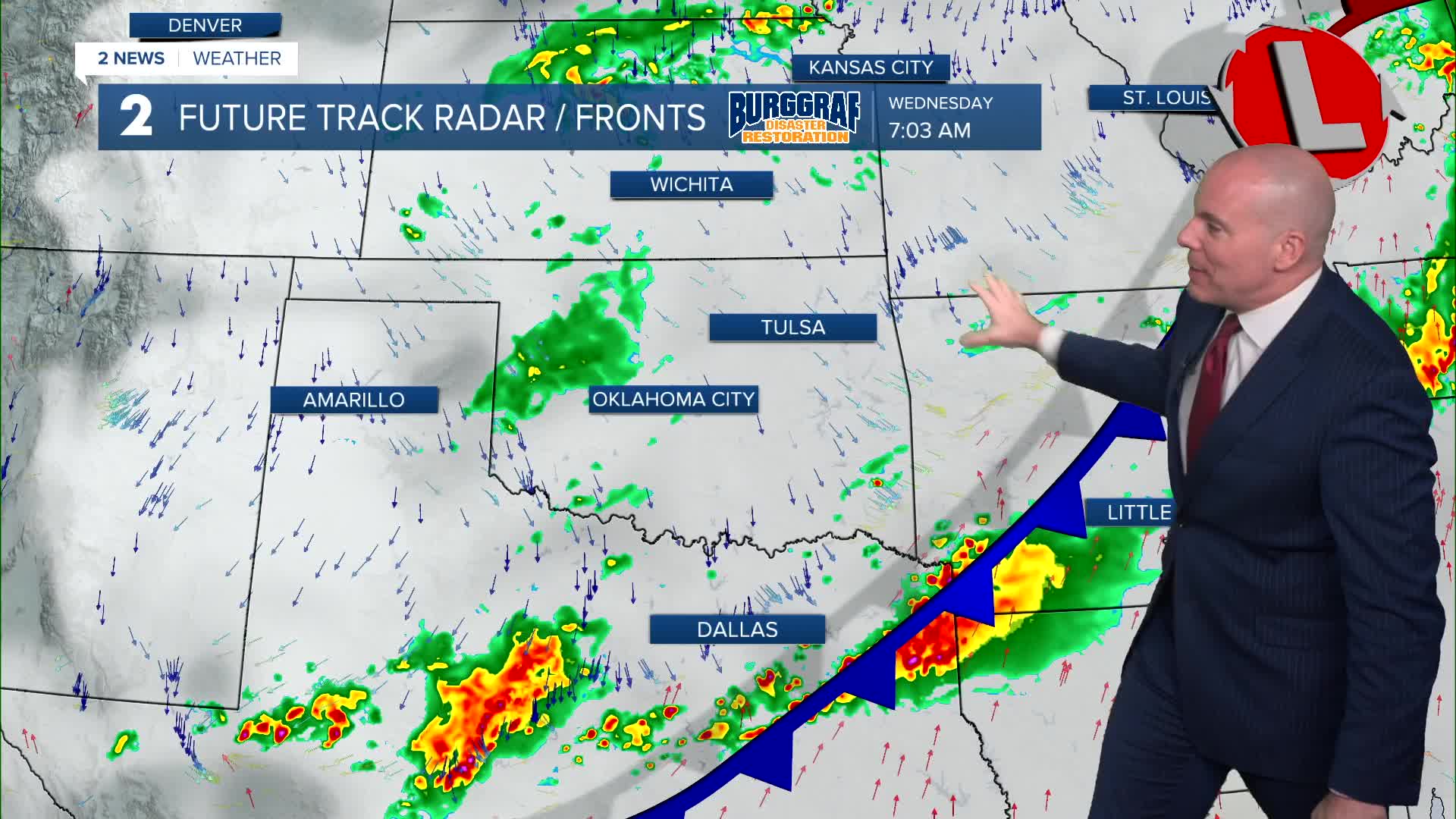 Highest chance of showers and storms will be south of I-44 the rest of the evening. Damaging wind gusts, hail, a low tornado threat, and a flood threat exist with the strongest and heaviest storms. Severe and flooding are a concern with the heaviest and strongest storms. Damaging wind gusts, hail, and a low tornado threat. The severe threat will clear our southern counties by 11pm.