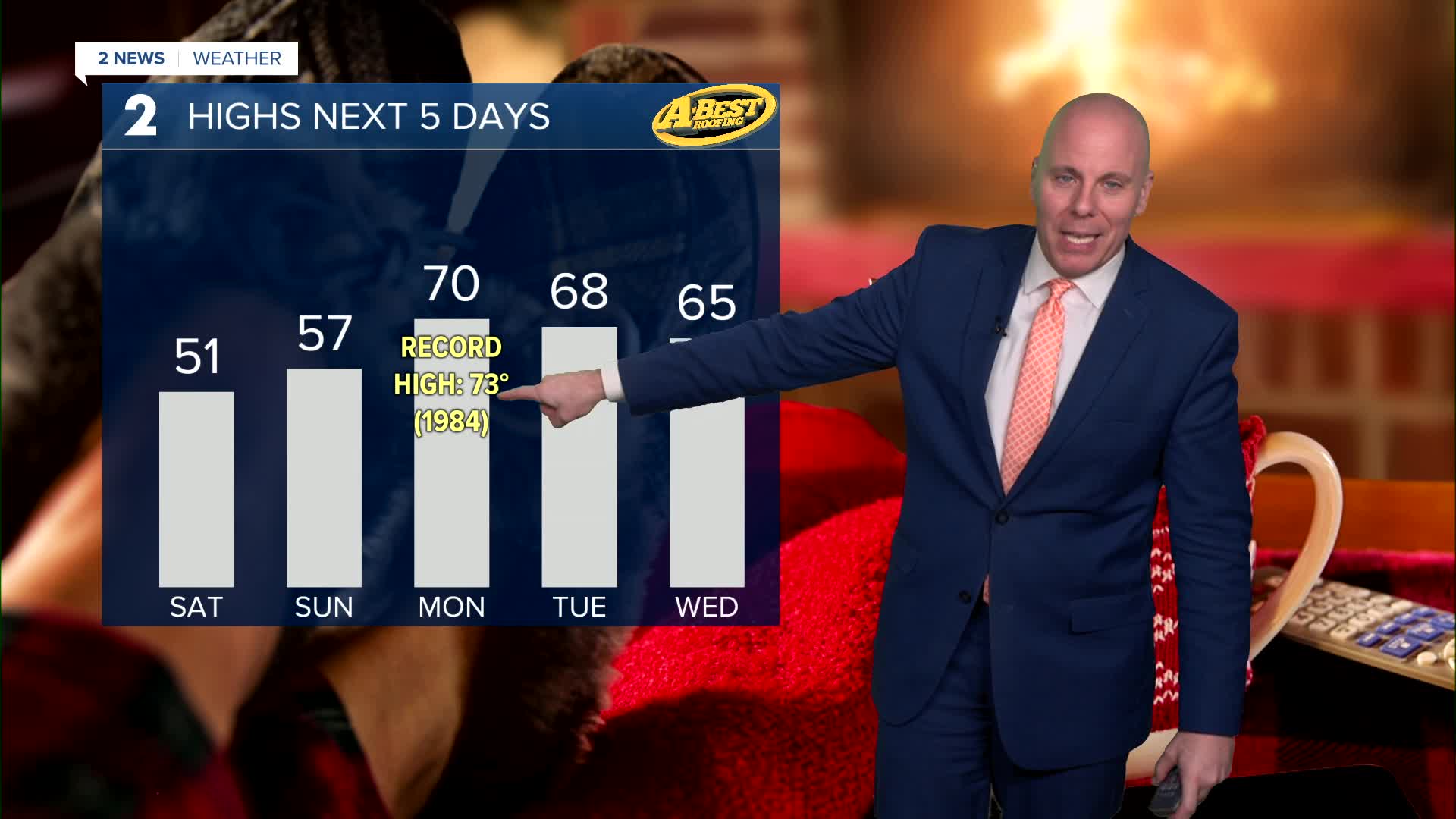 TULSA, OKLA — The first weekend of the New Year looks mild and manageable. Saturday will be cooler with morning lows in the mid to upper 30s and afternoon highs in the mid to lower 50s. We will start with some clouds, but we'll eventually enjoy sunshine too.