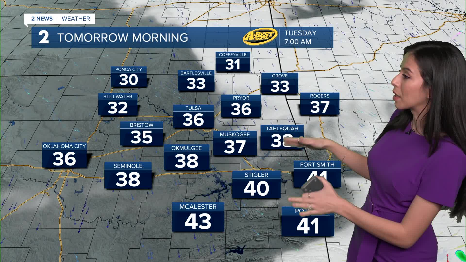 TULSA, Okla. — Monday afternoon is looking fantastic. Temperatures will range from mid 50s northeast to low to mid 60s southwest. Currently forecasting a high near 60°F for Tulsa. We'll enjoy some sunshine, perhaps filtered sun with more high level clouds moving in during the afternoon. Great day to be outside or head to the car wash!