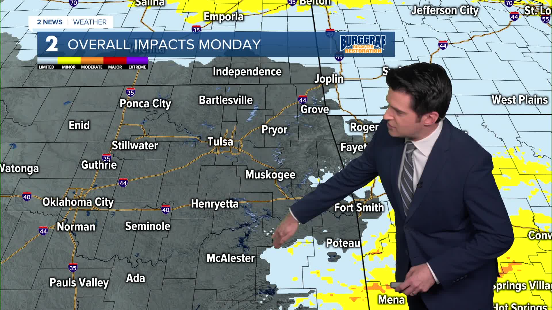 TULSA, OKLA. — We'll see partly to mostly cloudy skies tonight with NNW winds 10-15 mph with gusts up to around 30 mph. Wind chills overnight into Sunday morning down to the teens to near 20°. The low in Tulsa down to 25°.