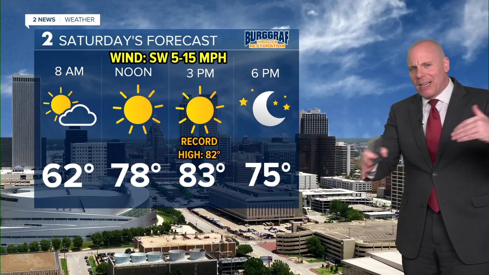 Temperatures look to trend even warmer for Saturday with highs in the low to mid-80s! Tulsa's record high for November 15 is 82°F (set in 1950), and we'll be close to either tying or breaking that record Saturday afternoon.