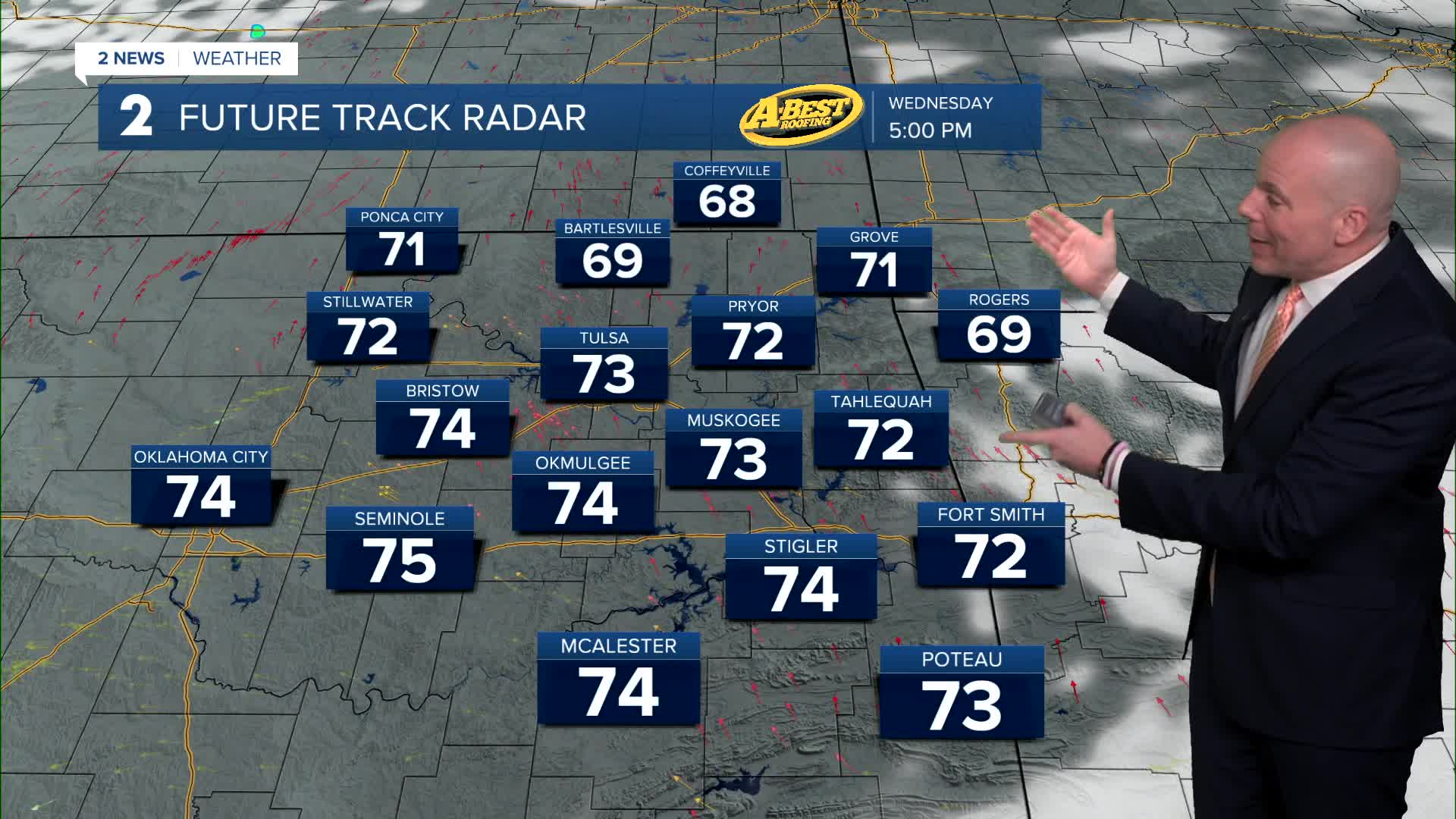 TULSA, Okla. — Lows in the mid 40s Wednesday with daytime highs in the low to mid 70s again. Partly cloudy to mostly sunny skies. A lower fire danger with light winds out of the S to E at 5-10 mph.