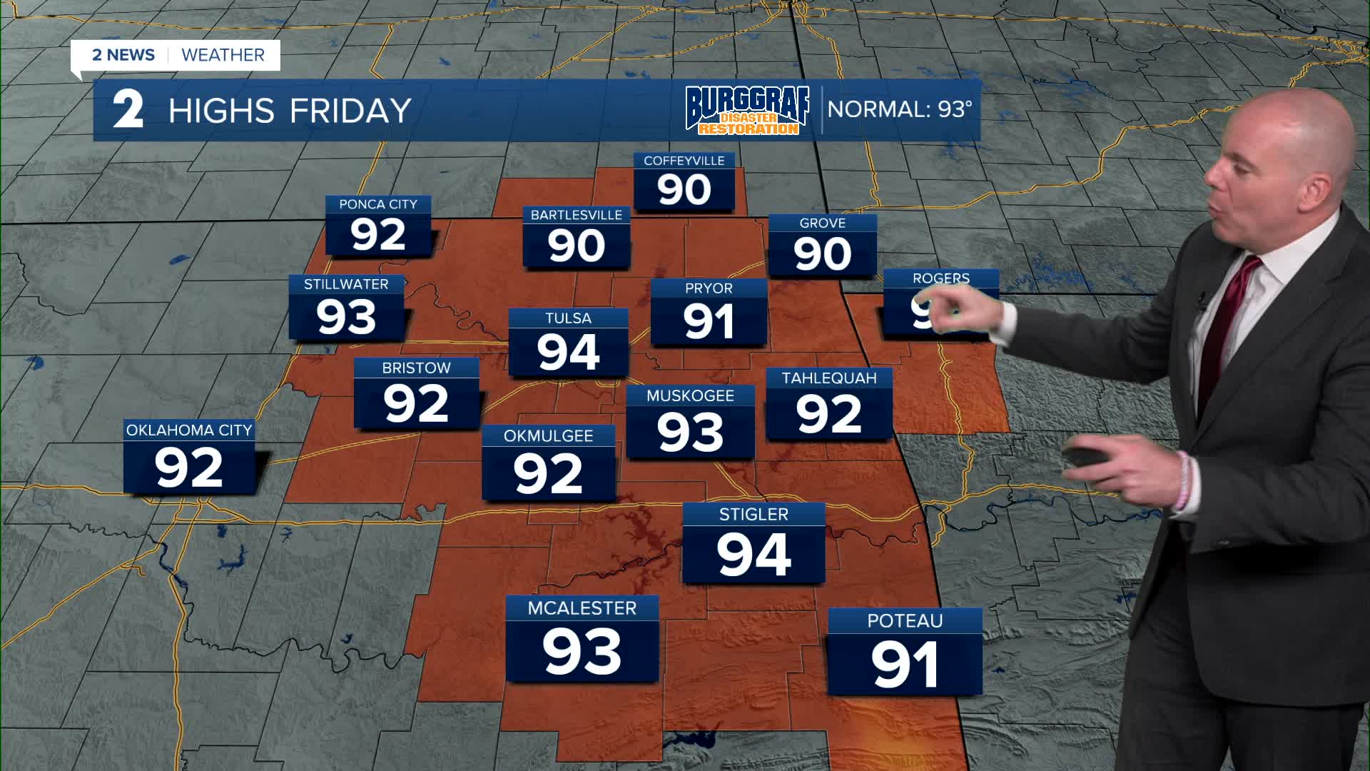 We will top out near to slightly above normal in the low to mid-90s for Friday afternoon.
