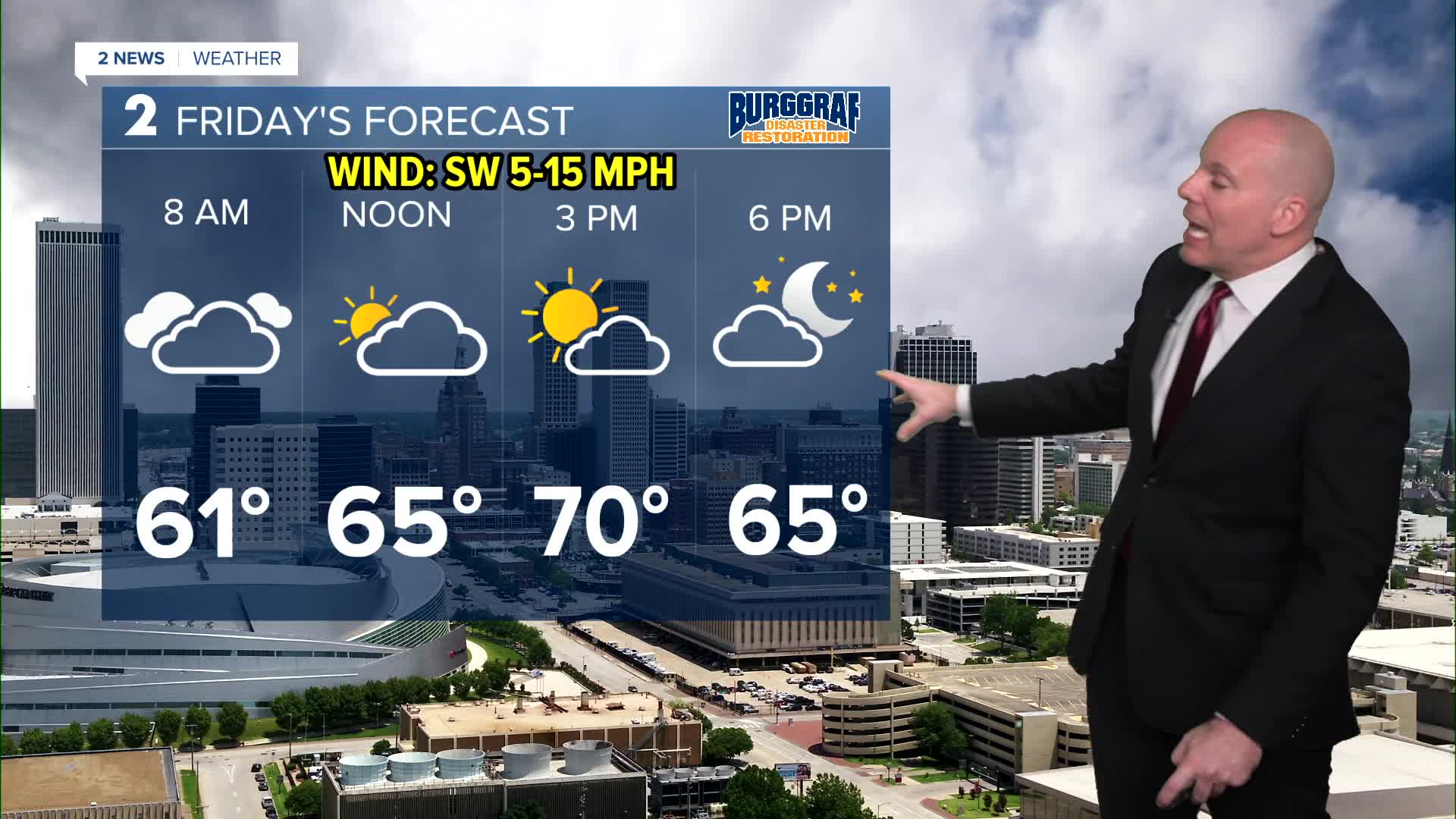 TULSA, OKLA — Rain will gradually move out to the north and east overnight into Friday morning. A few isolated showers will remain north and east.