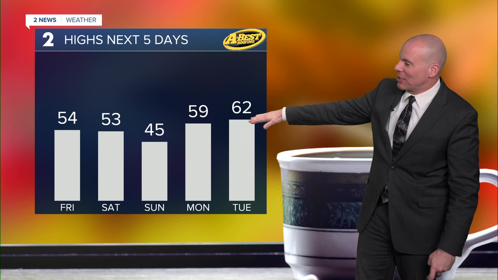 We'll see a brief warm early next week with temperatures just shy of 60-degree Monday afternoon and likely into the low 60s Tuesday! Another cold front will bring chillier temps back mid/late next week.