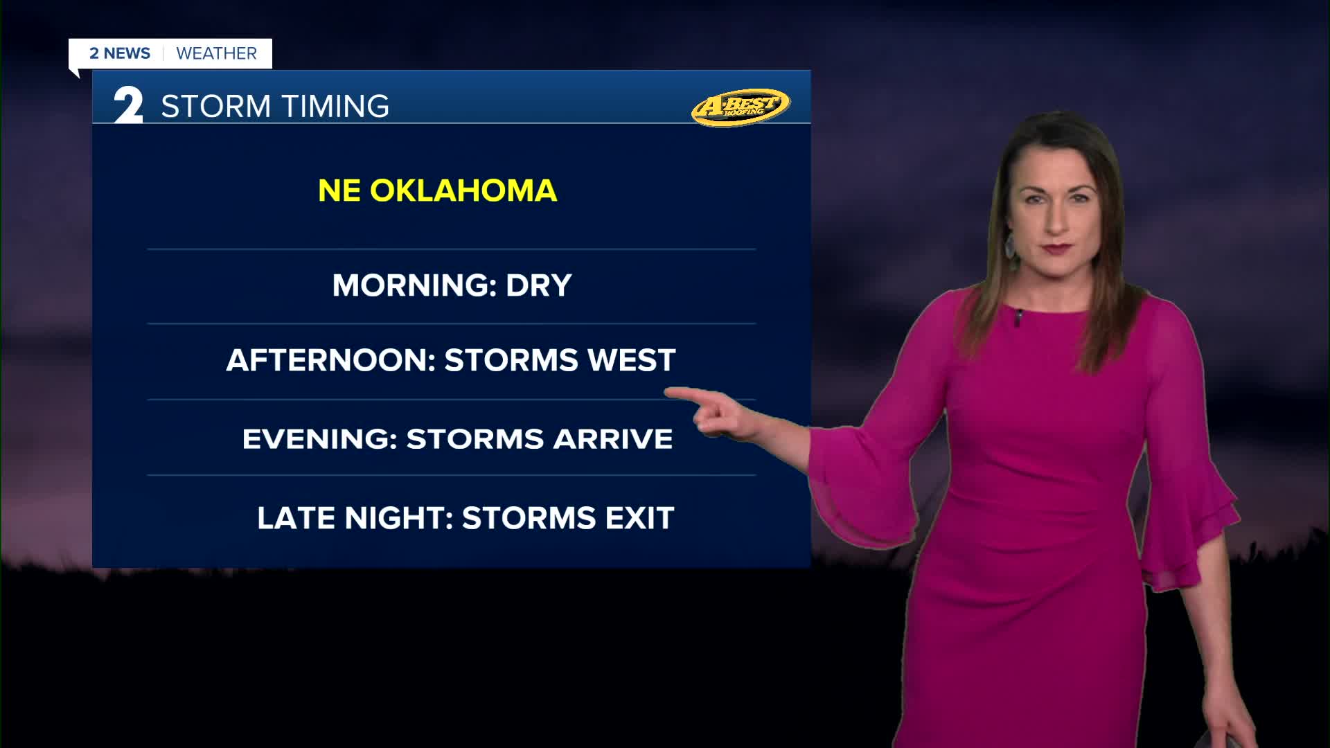 Storm timing looks to be late afternoon for central Oklahoma and around sunset for eastern Oklahoma.