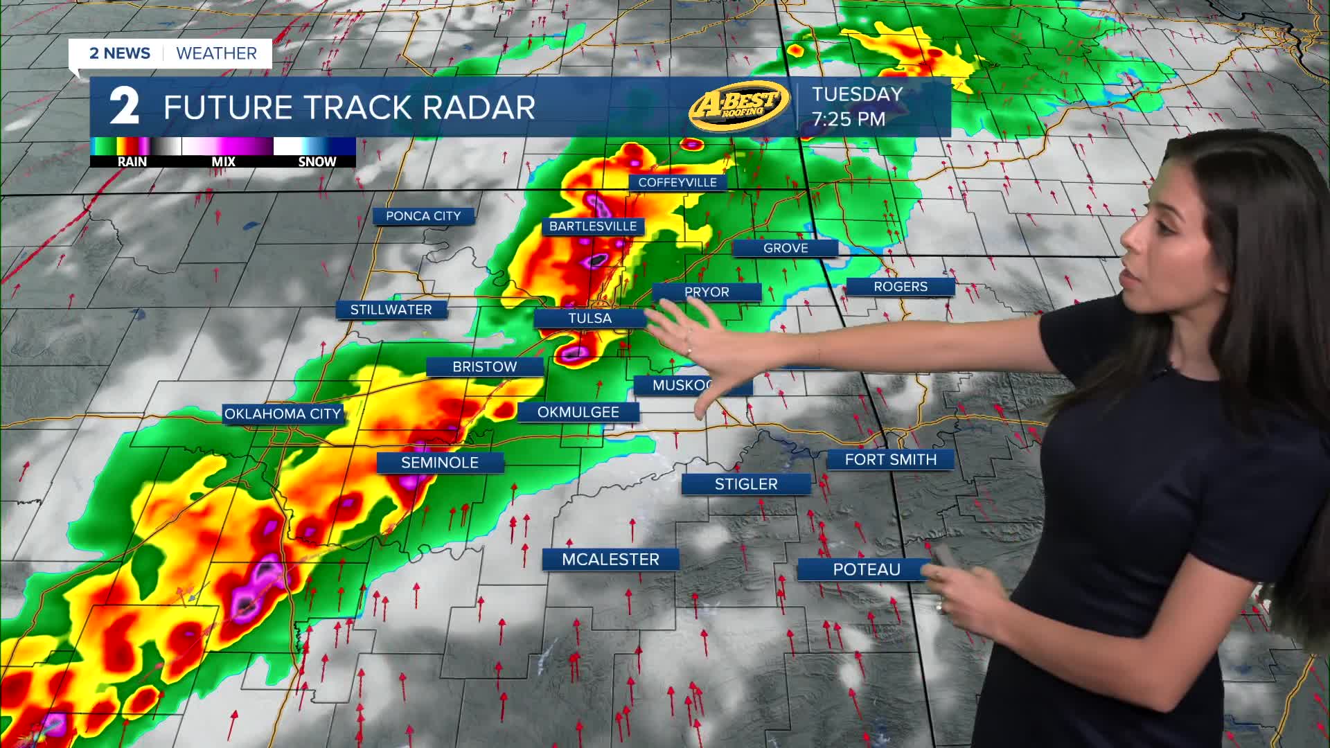 TULSA, Okla. — A warm start this Monday morning with temperatures in the low 70s. Mostly cloudy with a few sunbreaks and highs in the mid to low 80s. South winds 15-25 mph with gusts 30-35 mph the majority of the day. An isolated shower or storm possible this afternoon and evening but the most will be dry. If a storm were to develop, it would turn severe fairly quickly in the given environment.
