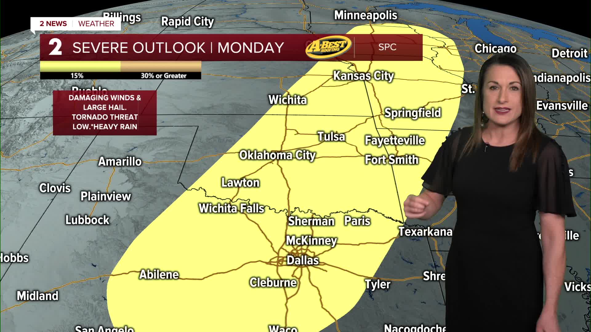 After this system moves out Sunday night, another low-pressure system may quickly follow, bringing another round of showers and thunderstorms Monday into Tuesday.