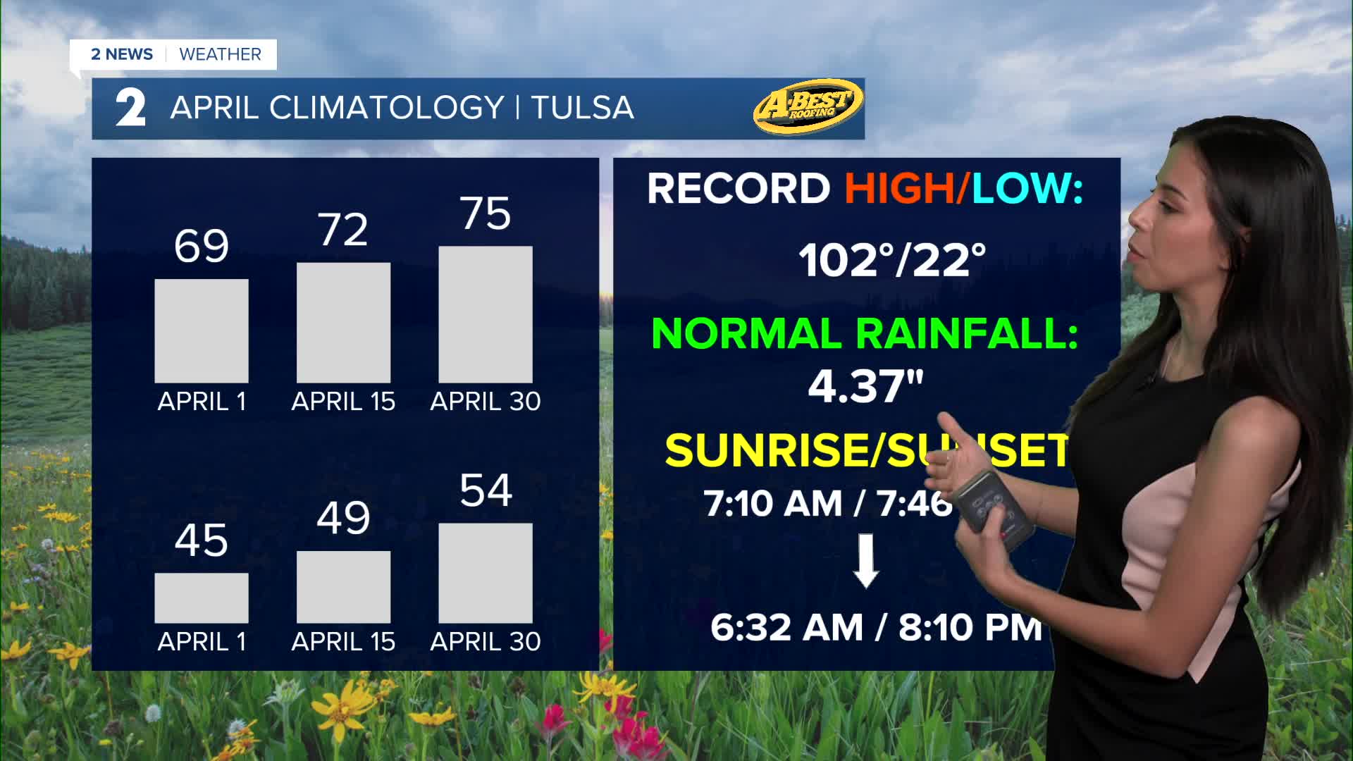 TULSA, Okla. — A mild start to Sunday with temperatures this afternoon warming up near 80°. South winds gusting 30-35 mph. Fire weather increases today with mostly sunny skies.