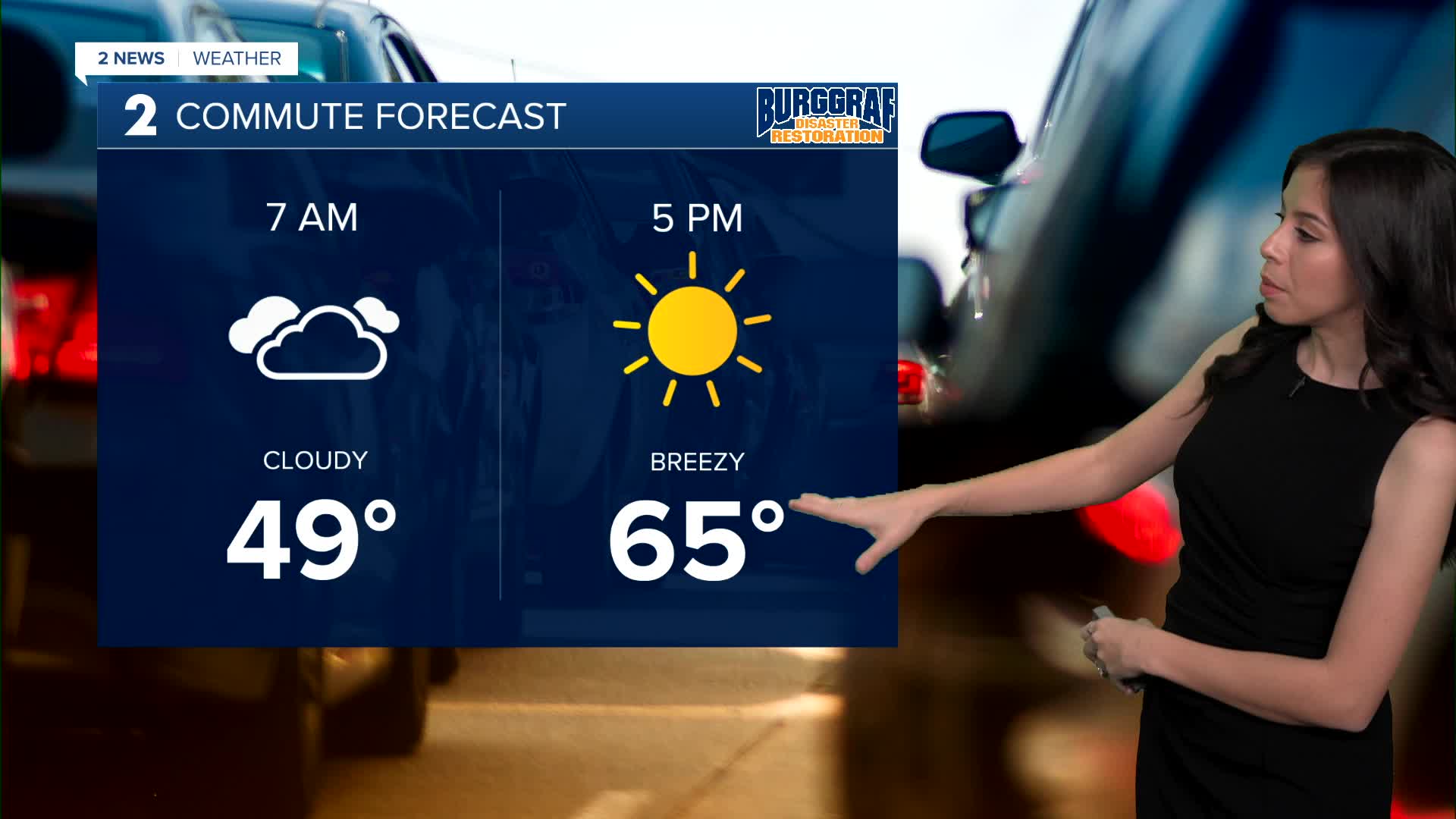 TULSA, Okla. — A mild first full day of winter with temperatures near 50 degrees this Monday morning. Highs in the upper 60s with decreasing clouds and south winds 10-20 mph.