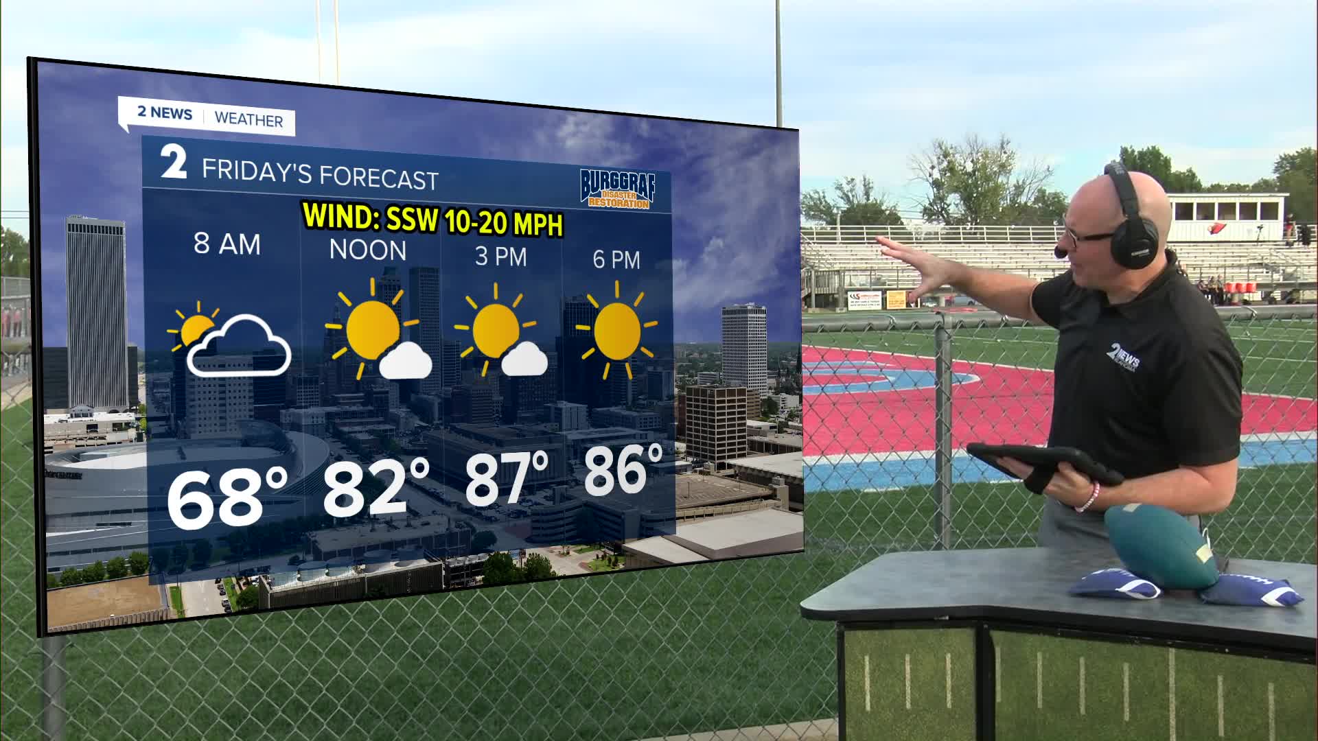 Winds will increase on Friday ahead of a cold front. South 10-20 with gusts up to 30 mph. Expect scattered showers and storms overnight Friday into Saturday morning. A low-end wind and hail threat will exist with any of the strongest storms. Lows in the upper 60s.