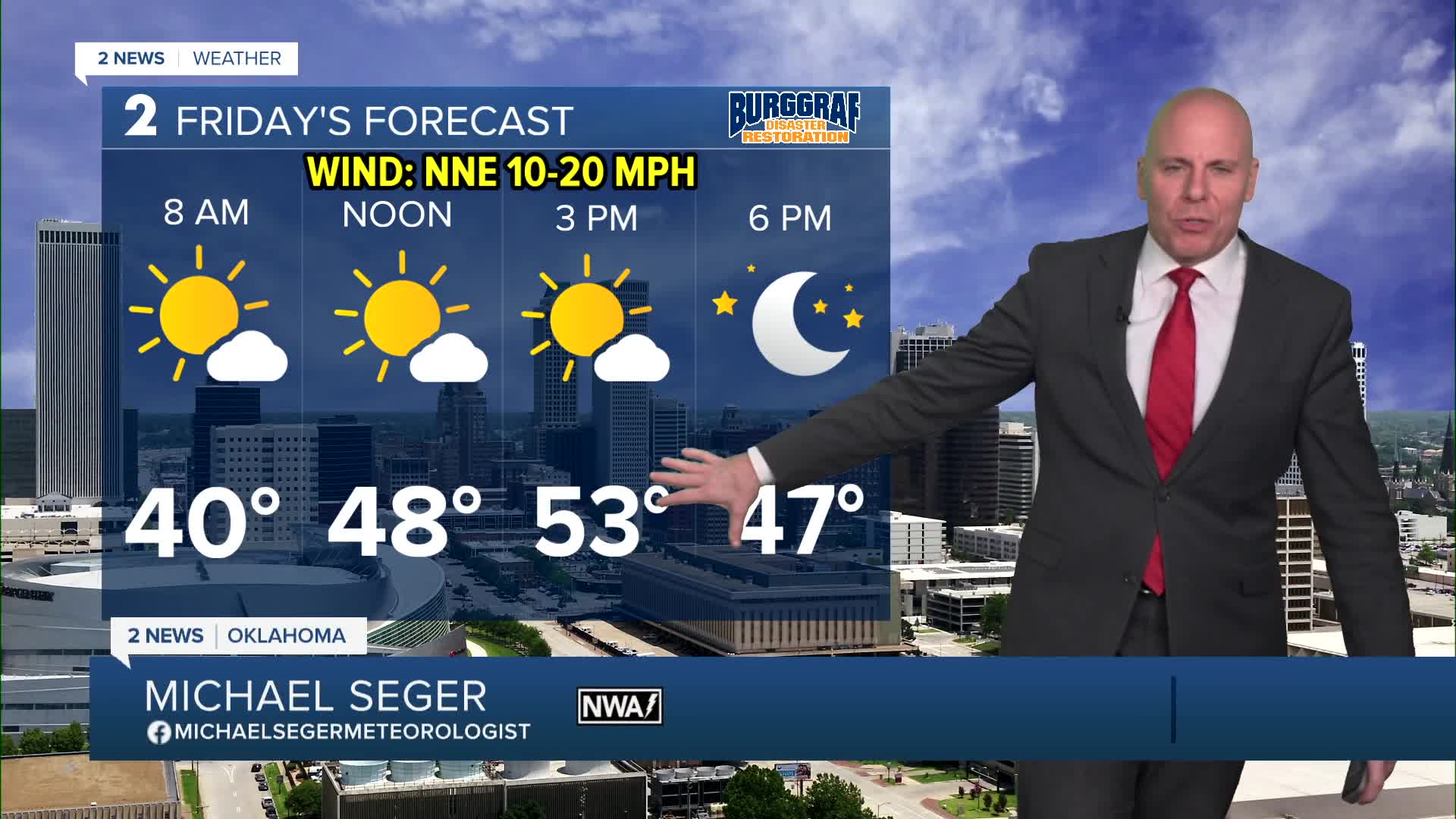 Highs for Friday will range from upper 40s north to lower 60s south. In the Tulsa metro we are most likely looking at low/mid 50s.